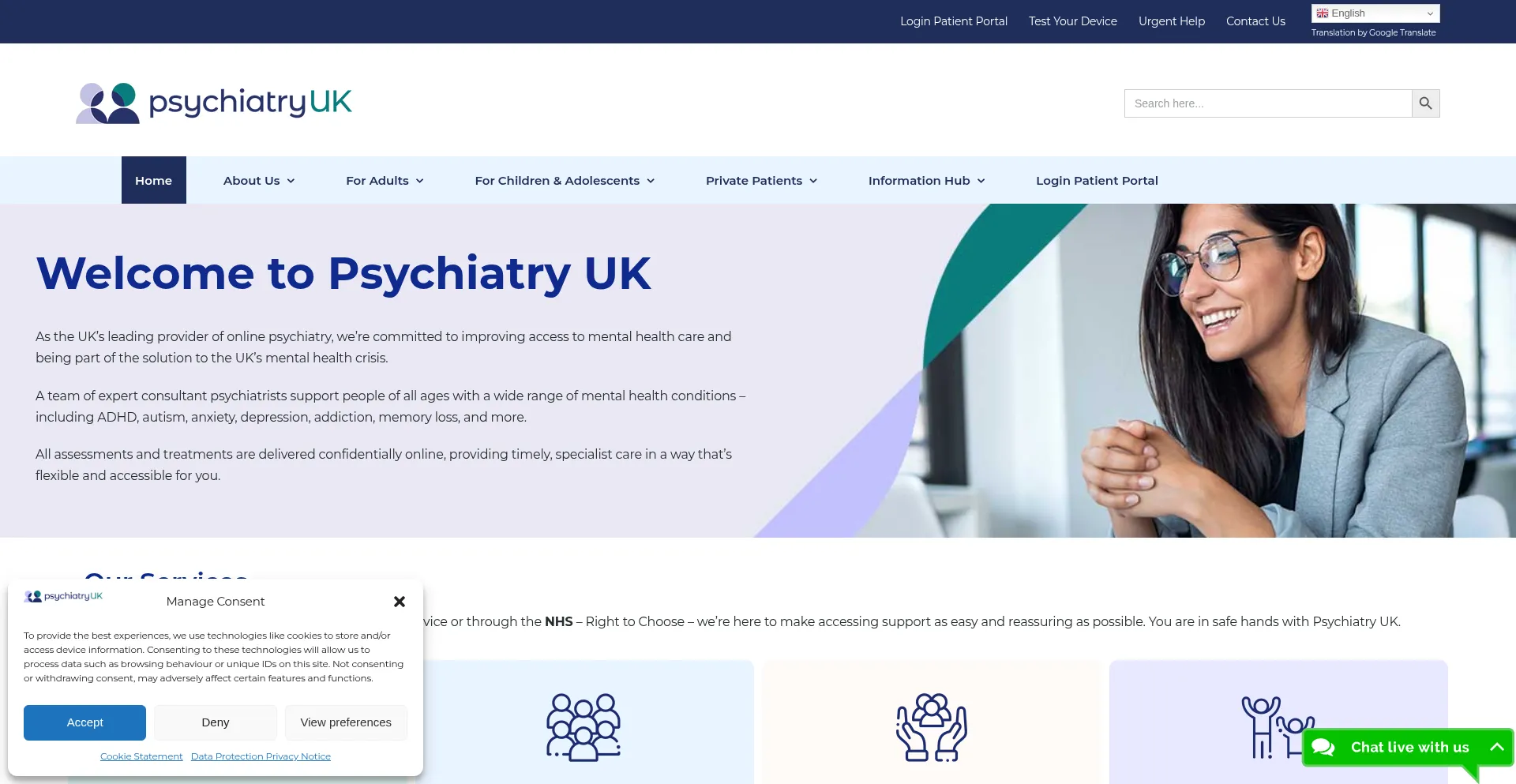 The psychiatry-uk.com website uses Google Tag Manager to add and update tracking tags on its website.