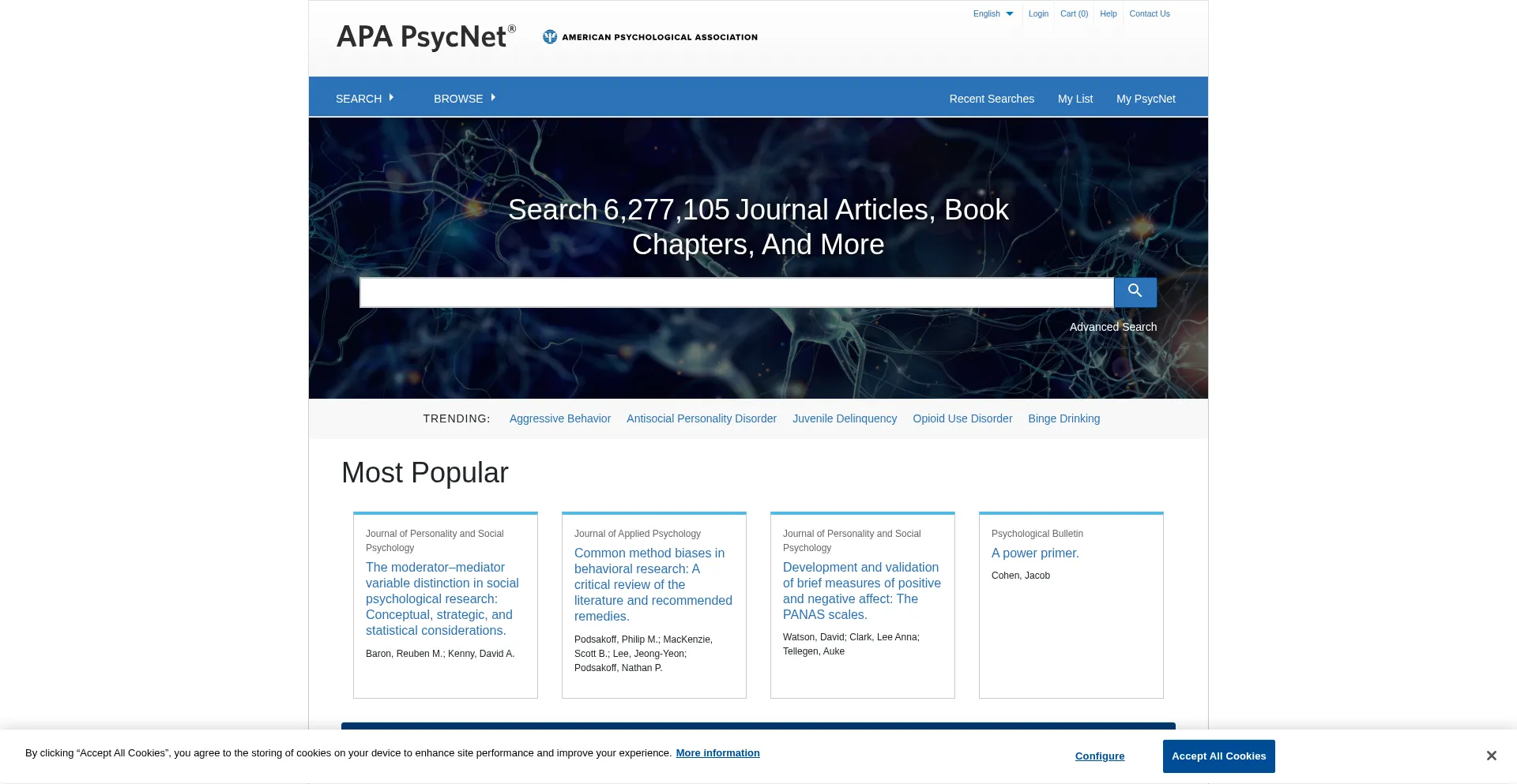 The website implements cookie consent mechanisms in compliance with privacy regulations such as GDPR or CCPA. This demonstrates that psycnet.apa.org adheres to data protection standards and provides users with control over personal data collection practices.