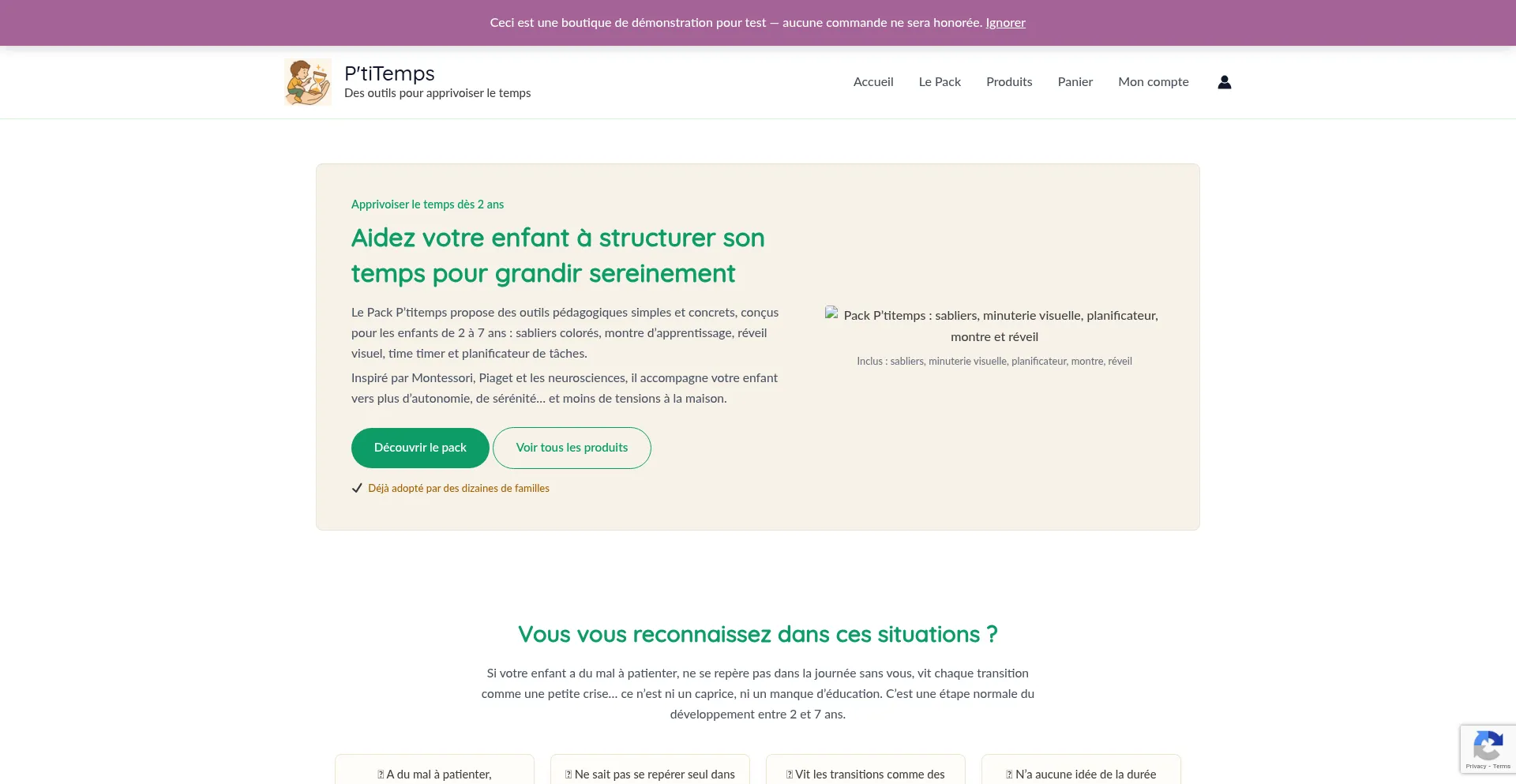 Analysis indicates that ptitemps.fr operates as an e-commerce platform facilitating online transactions for goods or services. The website implements shopping cart functionality, payment processing systems, and product catalog features typical of commercial retail operations.