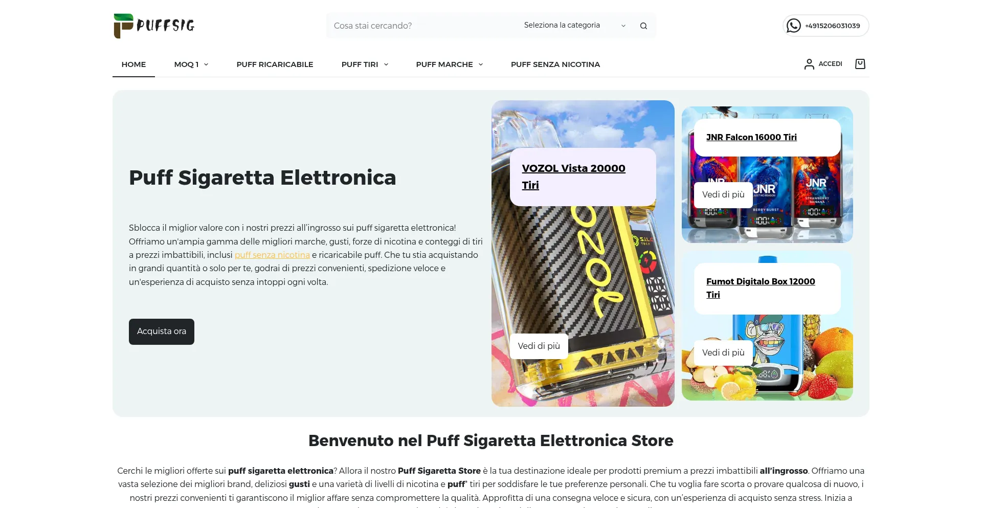 Analysis indicates that puffsigaretta.it operates as an e-commerce platform facilitating online transactions for goods or services. The website implements shopping cart functionality, payment processing systems, and product catalog features typical of commercial retail operations.