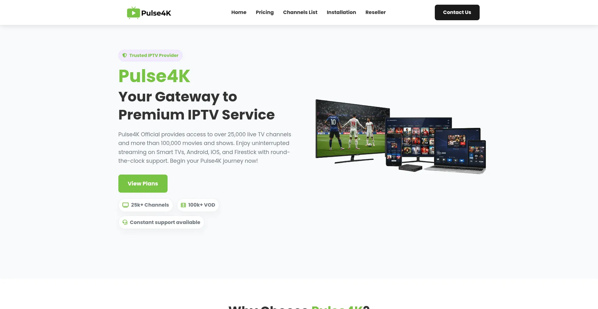 Pulse4K IPTV delivers premium IPTV with HD and 4K streaming. Enjoy live TV, sports, and on-demand content with fast setup and stable service.