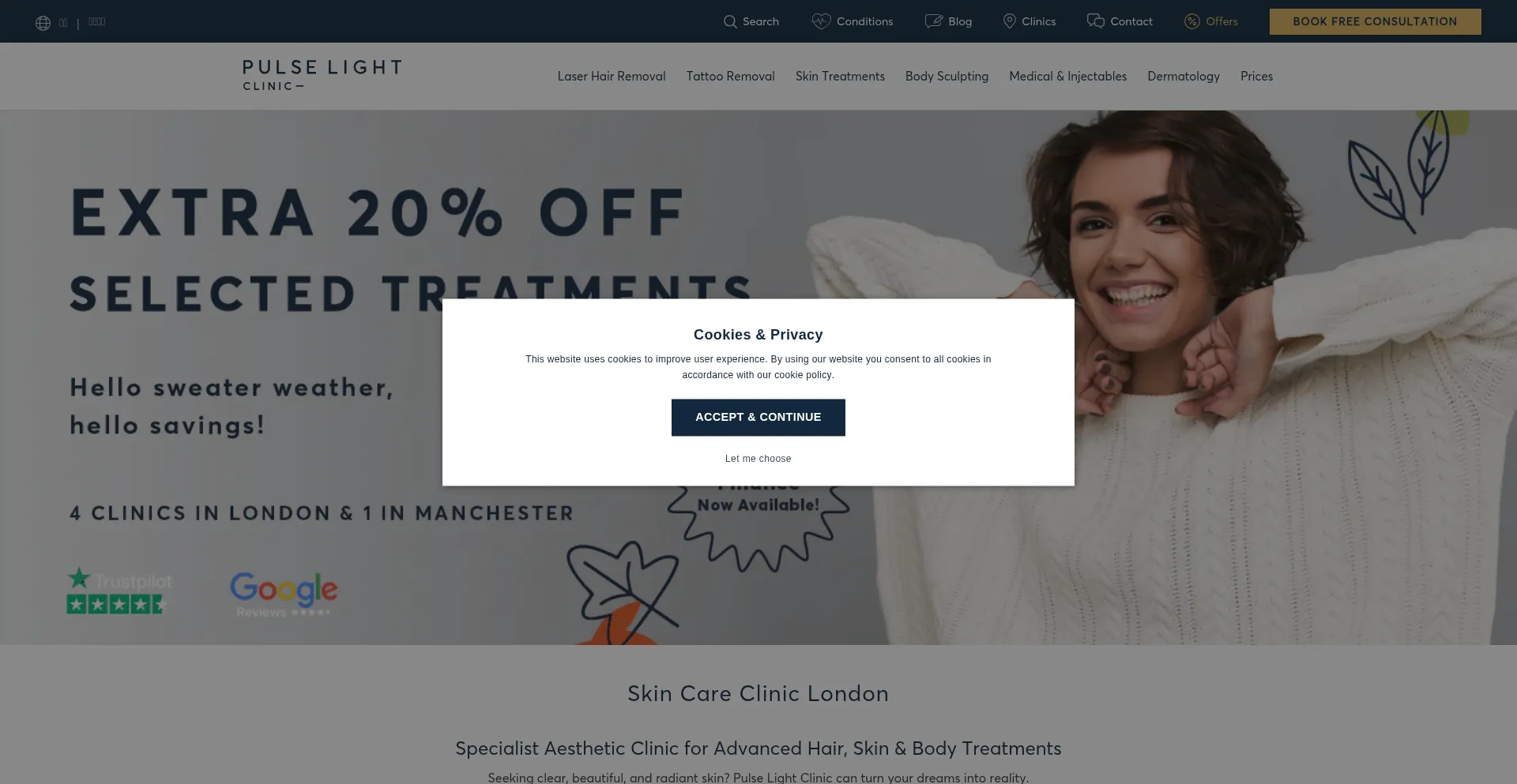 The website implements cookie consent mechanisms in compliance with privacy regulations such as GDPR or CCPA. This demonstrates that pulselightclinic.co.uk adheres to data protection standards and provides users with control over personal data collection practices.