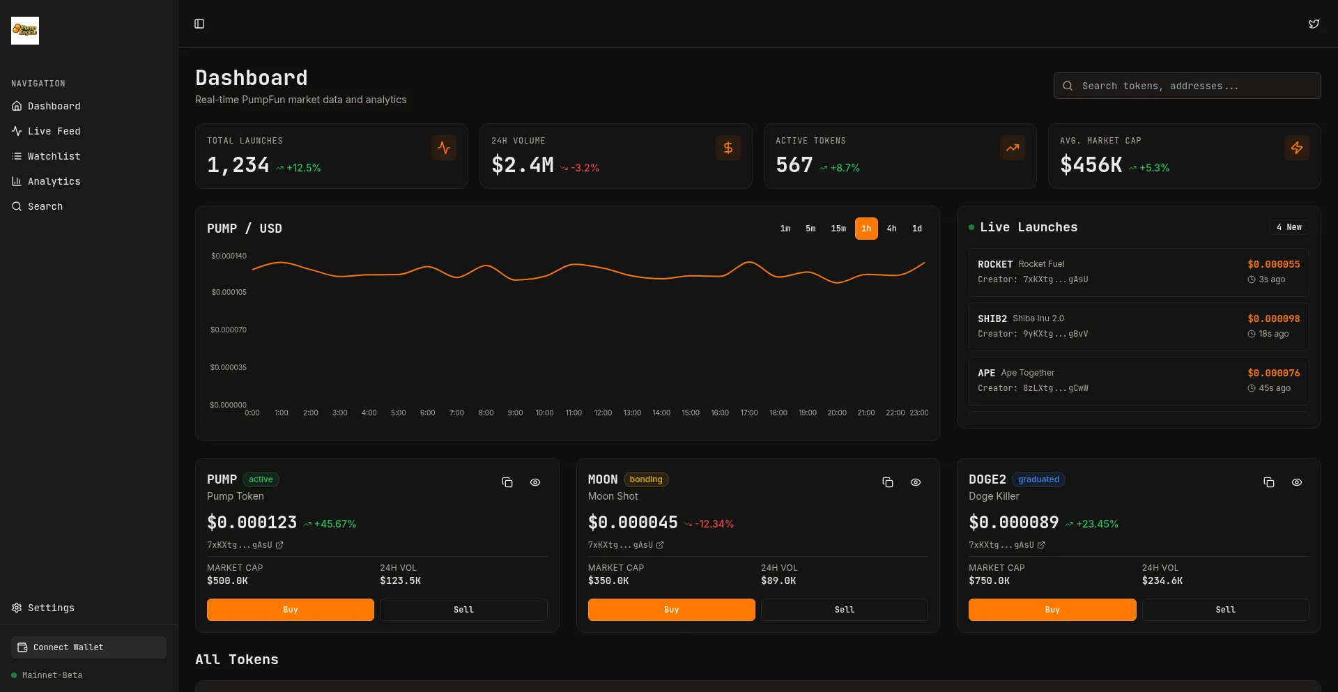 Decentralized terminal agent for Solana blockchain traders. Monitor real-time PumpFun token launches, track prices, and analyze market activity.