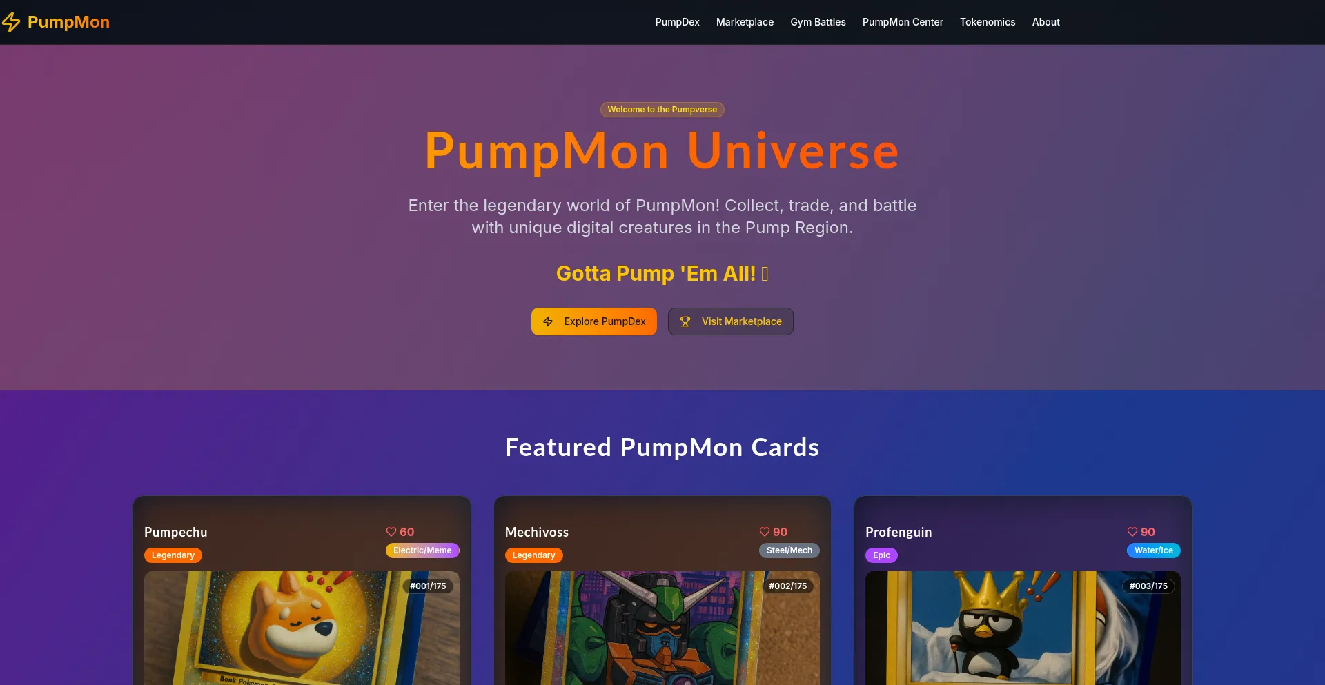 Enter the Pumpverse and discover legendary PumpMon cards! Gotta Pump 'Em All!