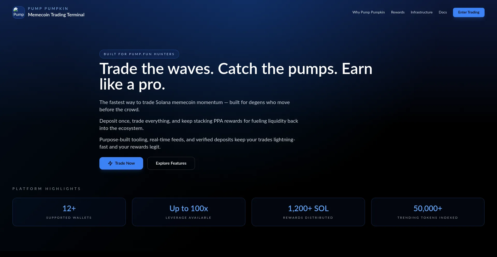 Pump Pumpkin is the first-ever leverage trading platform built for Pump.fun tokens. Go long or short on the hottest Solana meme coins with up to 100x leverage. Designed for mobi...