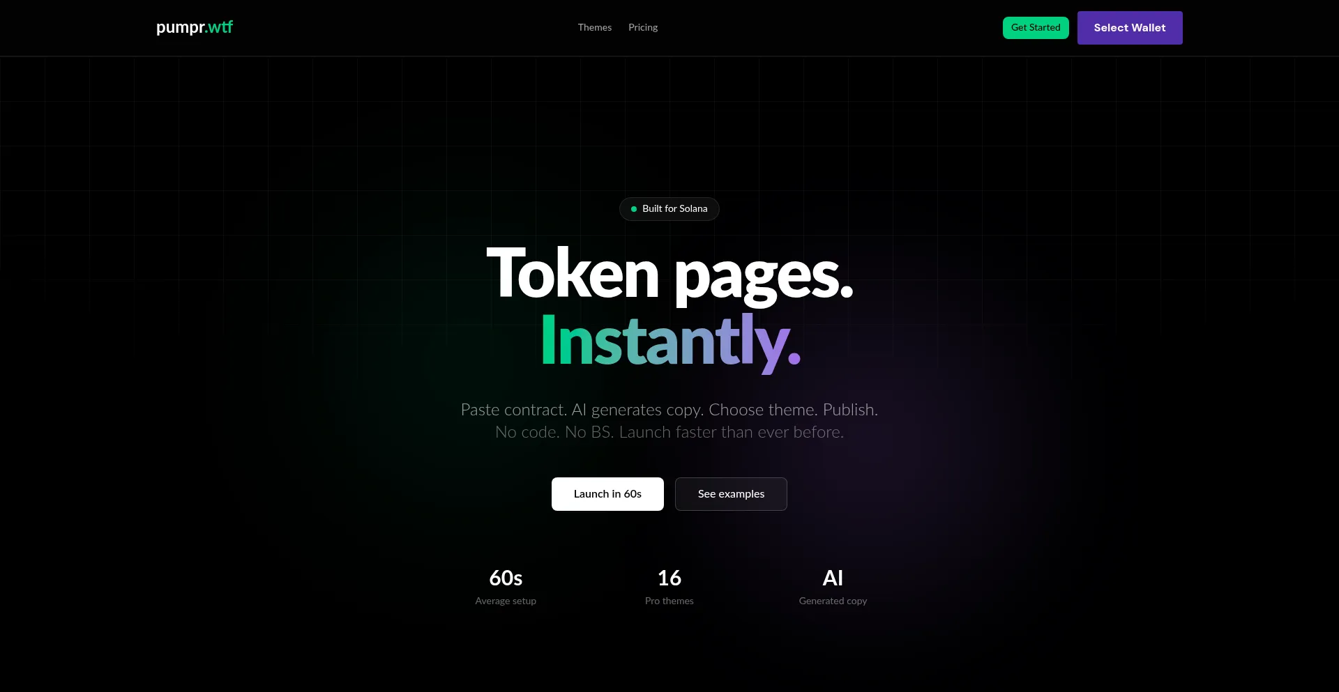 pumpr.wtf - Token Landing Pages in 60 Seconds | Solana Memecoin Pages