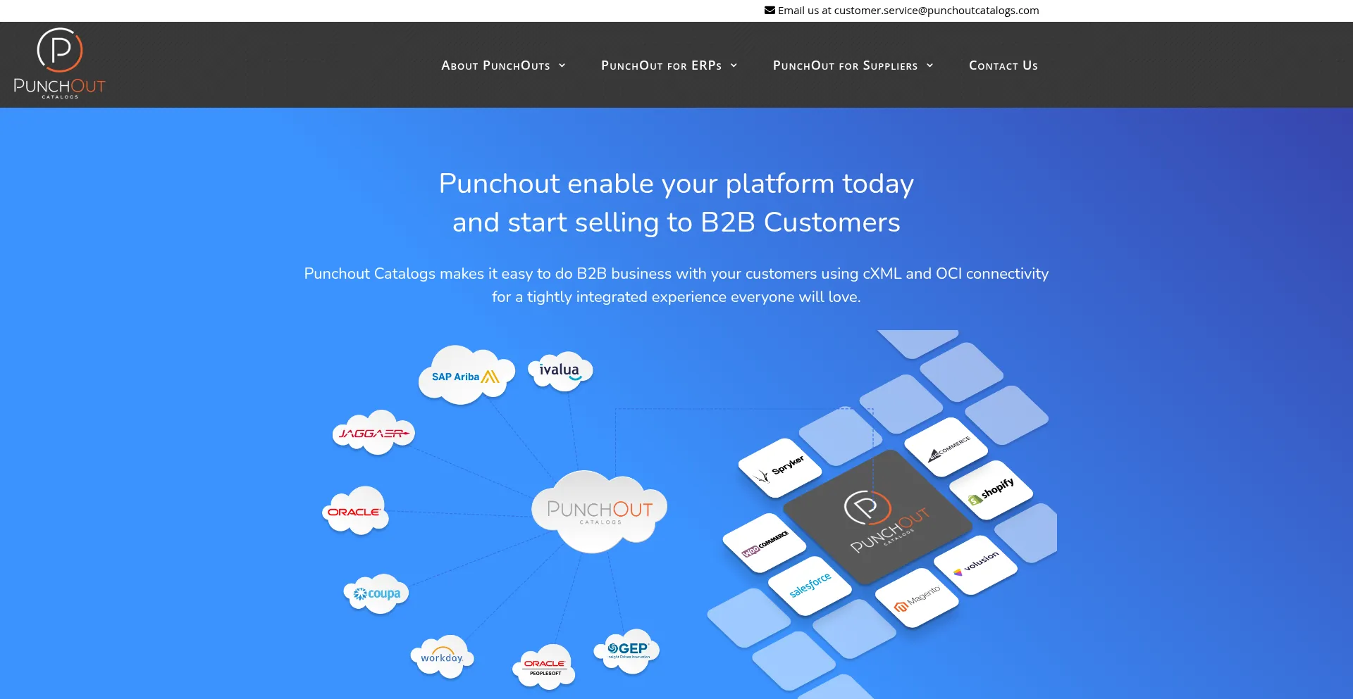 Connect your site with cXML or OCI to your procurement buyers or ERP systems with turnkey integration from PunchOut catalogs. We have been connecting businesses since 2010 with ...