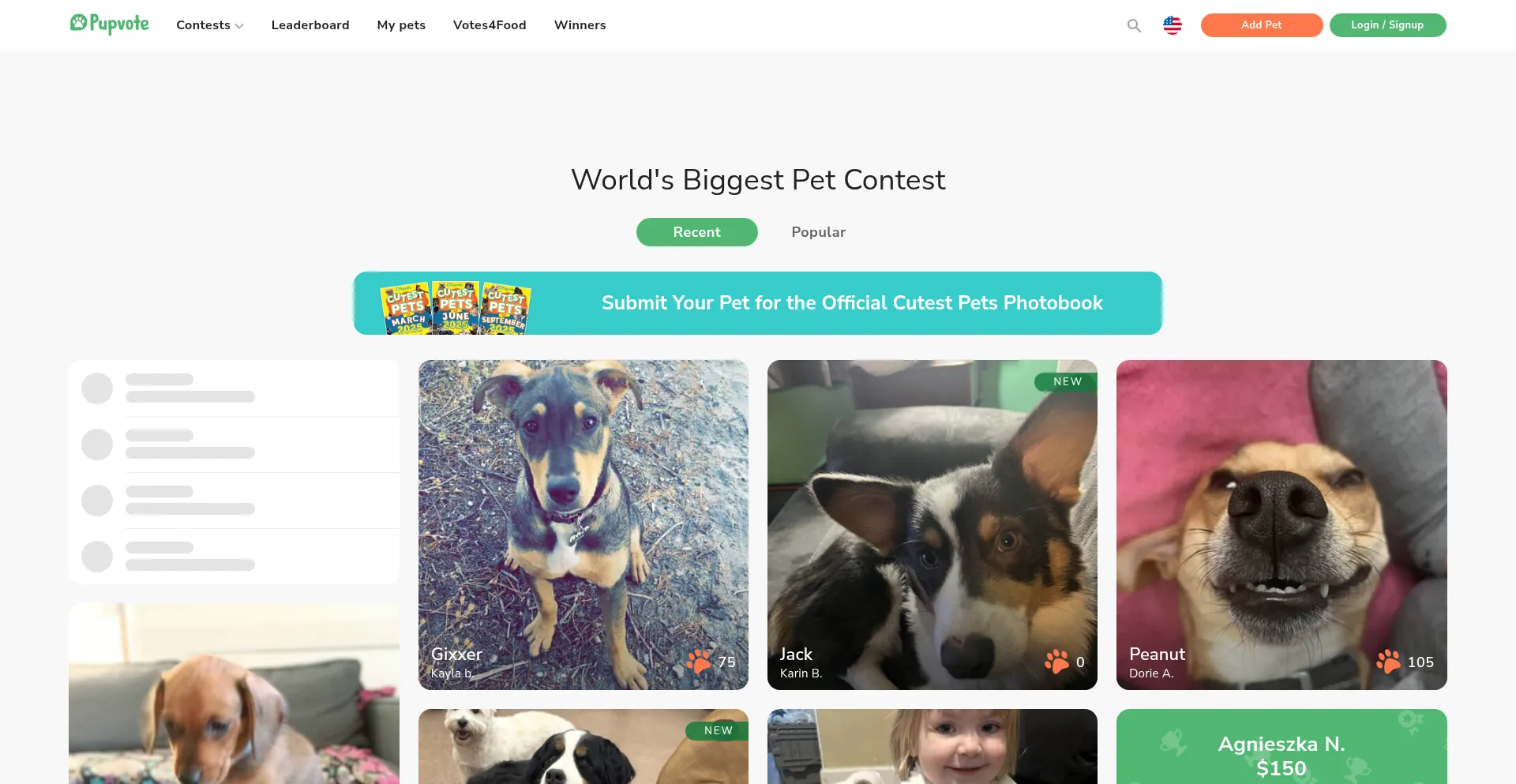 Do you have the cutest pet? Sign up for Pupvote and compete with Dogs & Cats from all over the world. $2000 worth of prizes every week!