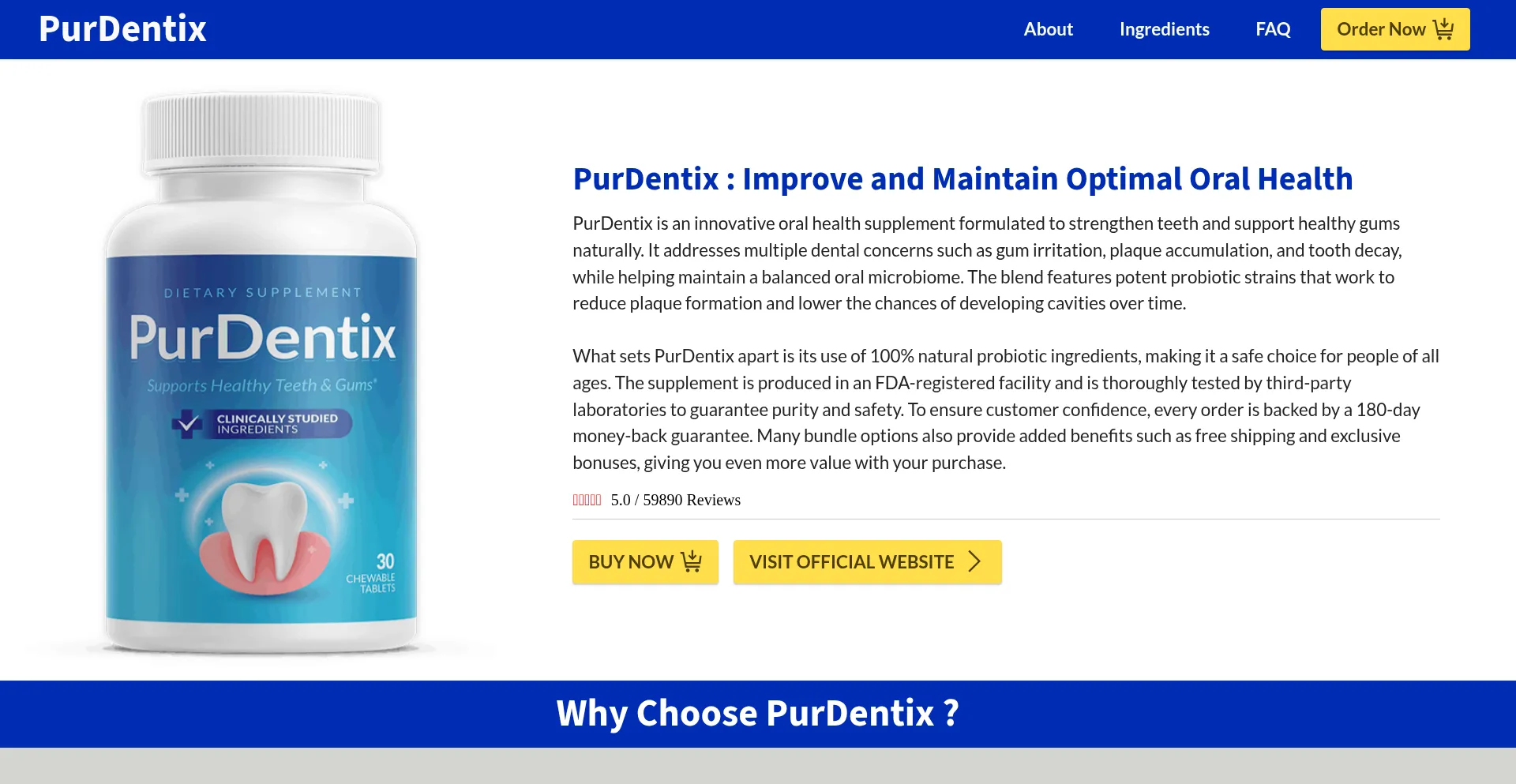 PurDentix is a powerful oral health supplement made from probiotics and natural herbs that support gum strength, fresh breath, and overall mouth cleanliness.