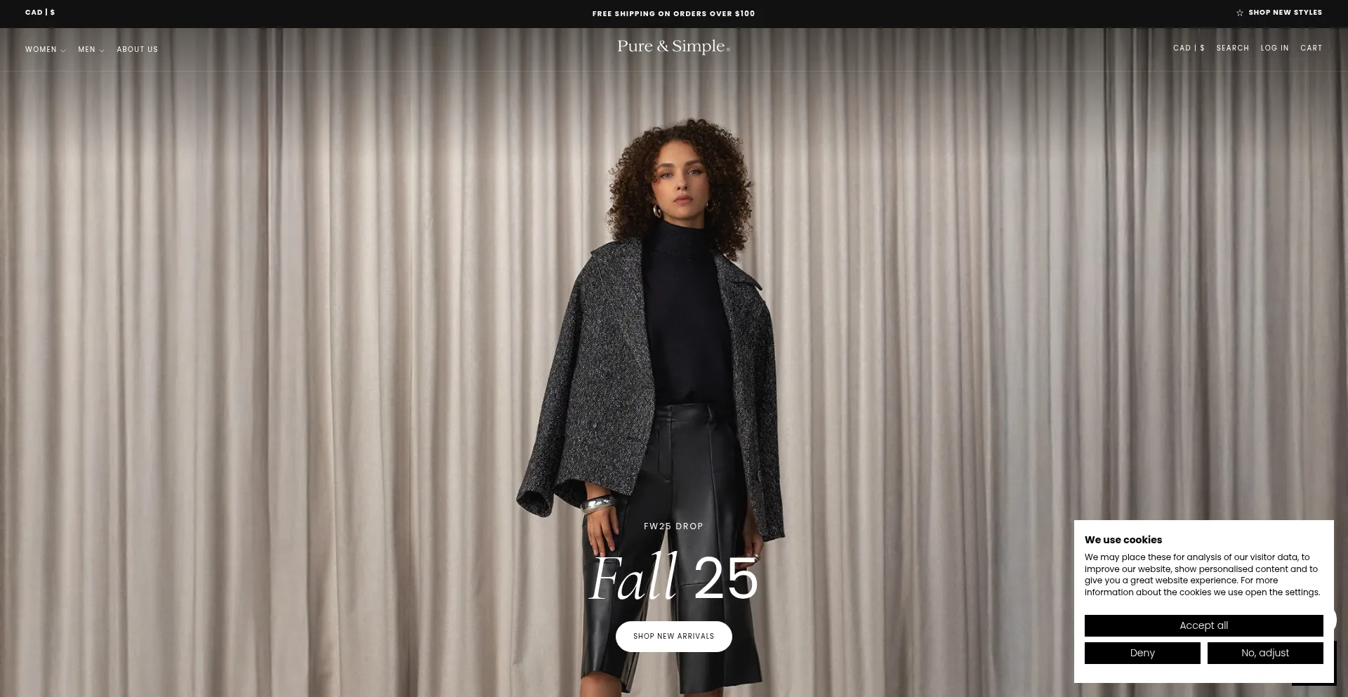 Our analyzer determines that website pureandsimpleclothing.ca is using Shopify CMS. Shopify is a popular e-commerce platform, powering around 4.4% of websites globally.