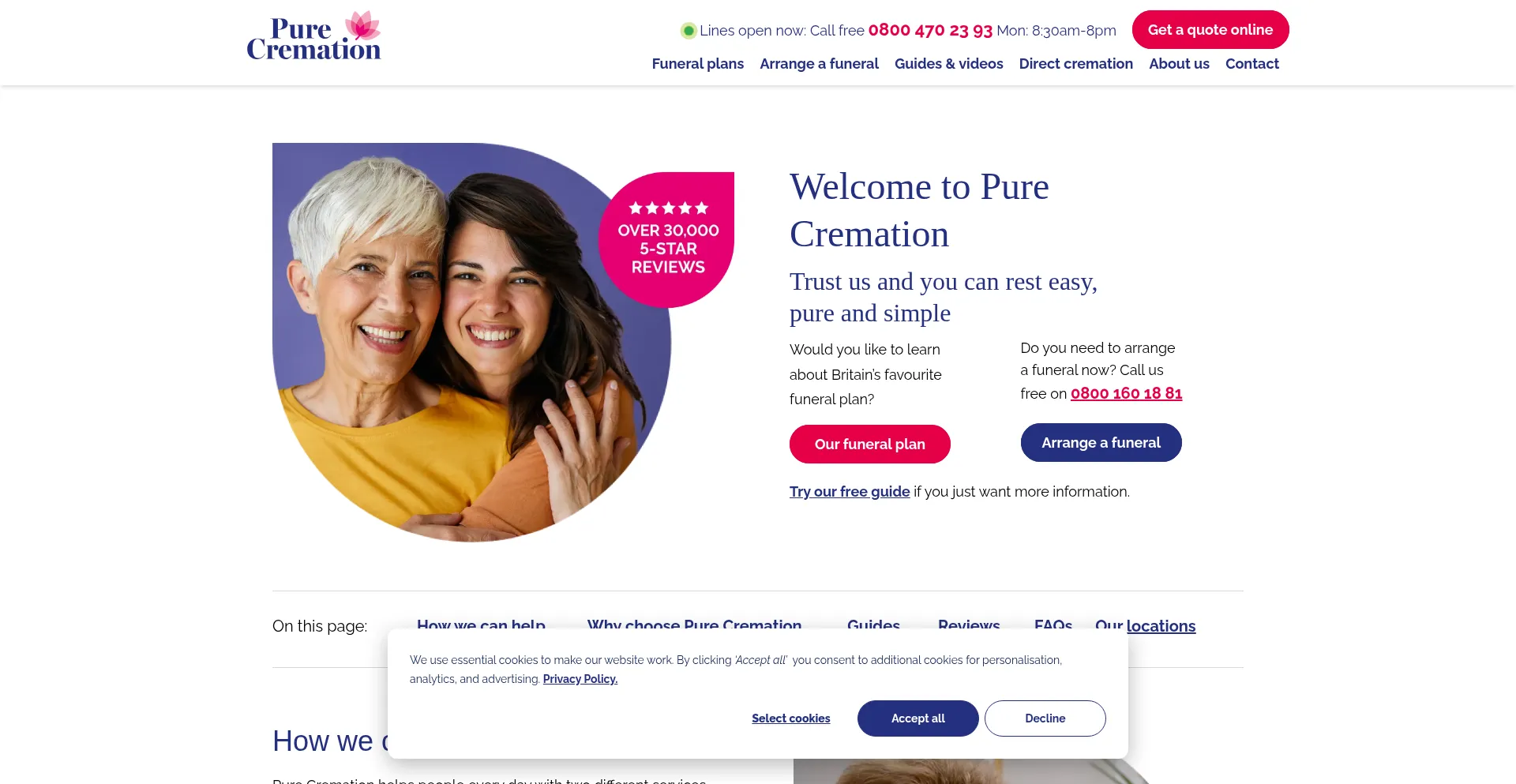 Rest easy with Pure – whether you need to arrange a funeral now or want a free quote for Britain’s favourite funeral plan. Find out more here.