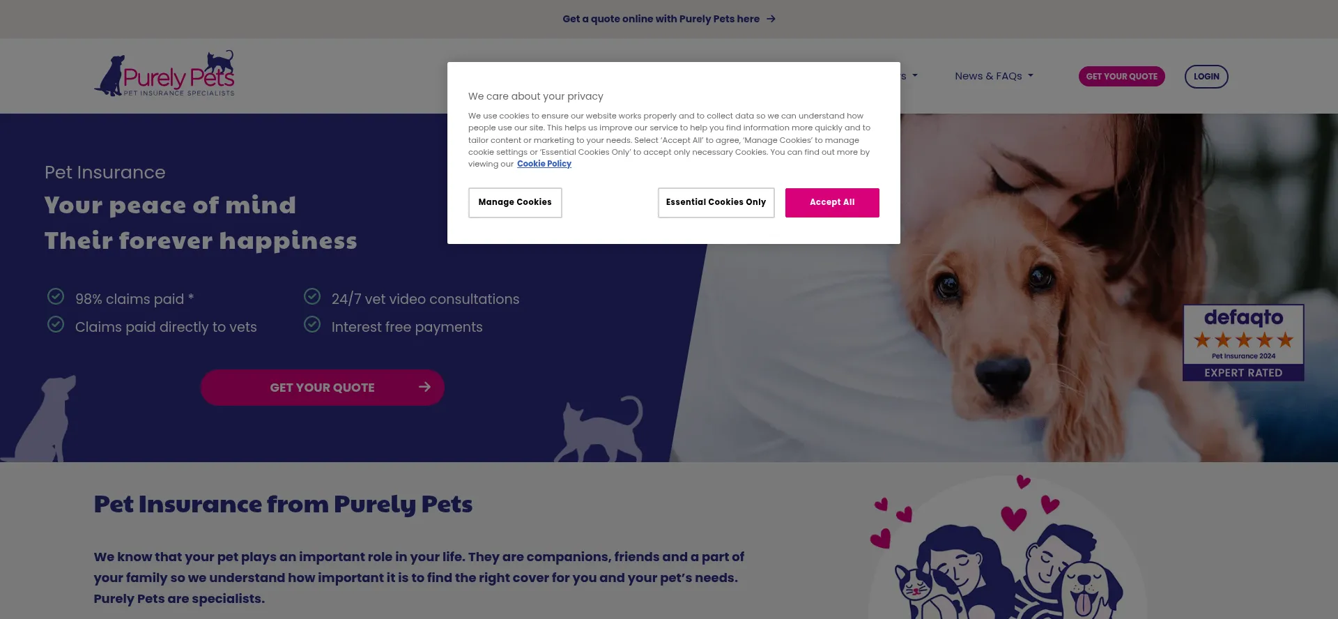 The website implements cookie consent mechanisms in compliance with privacy regulations such as GDPR or CCPA. This demonstrates that purelypetsinsurance.co.uk adheres to data protection standards and provides users with control over personal data collection practices.