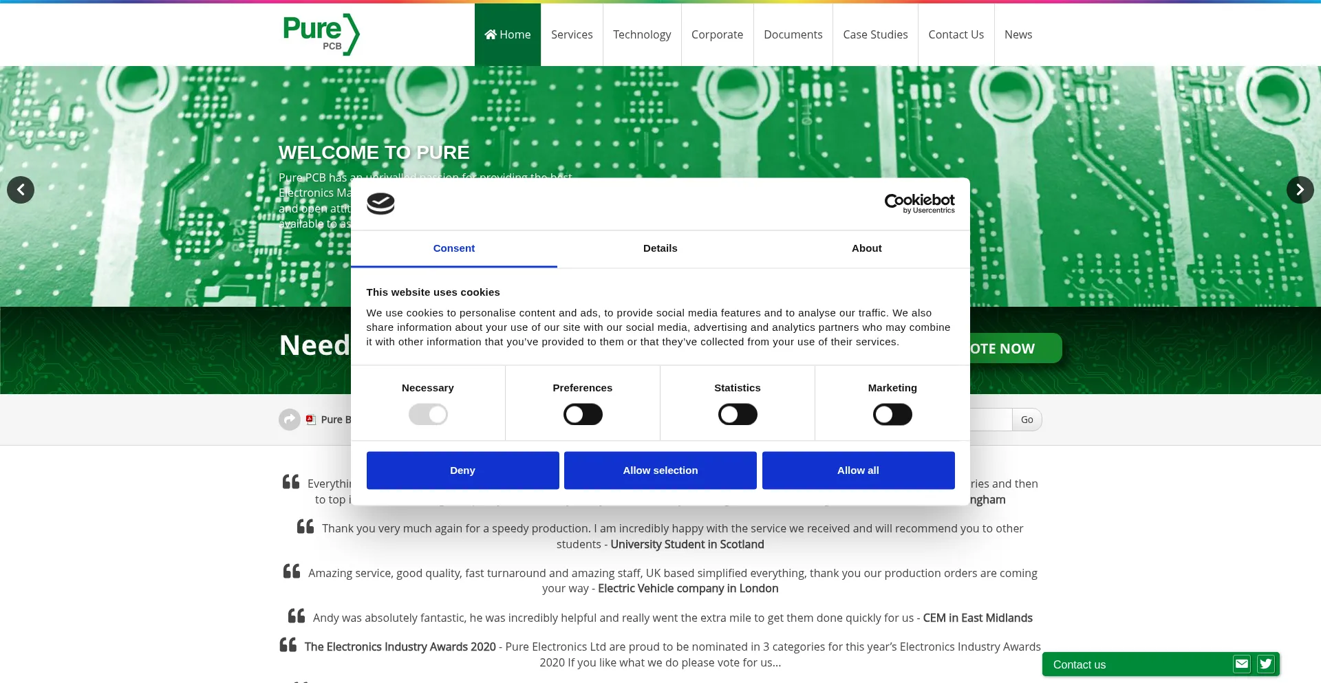 The website implements cookie consent mechanisms in compliance with privacy regulations such as GDPR or CCPA. This demonstrates that purepcb.co.uk adheres to data protection standards and provides users with control over personal data collection practices.