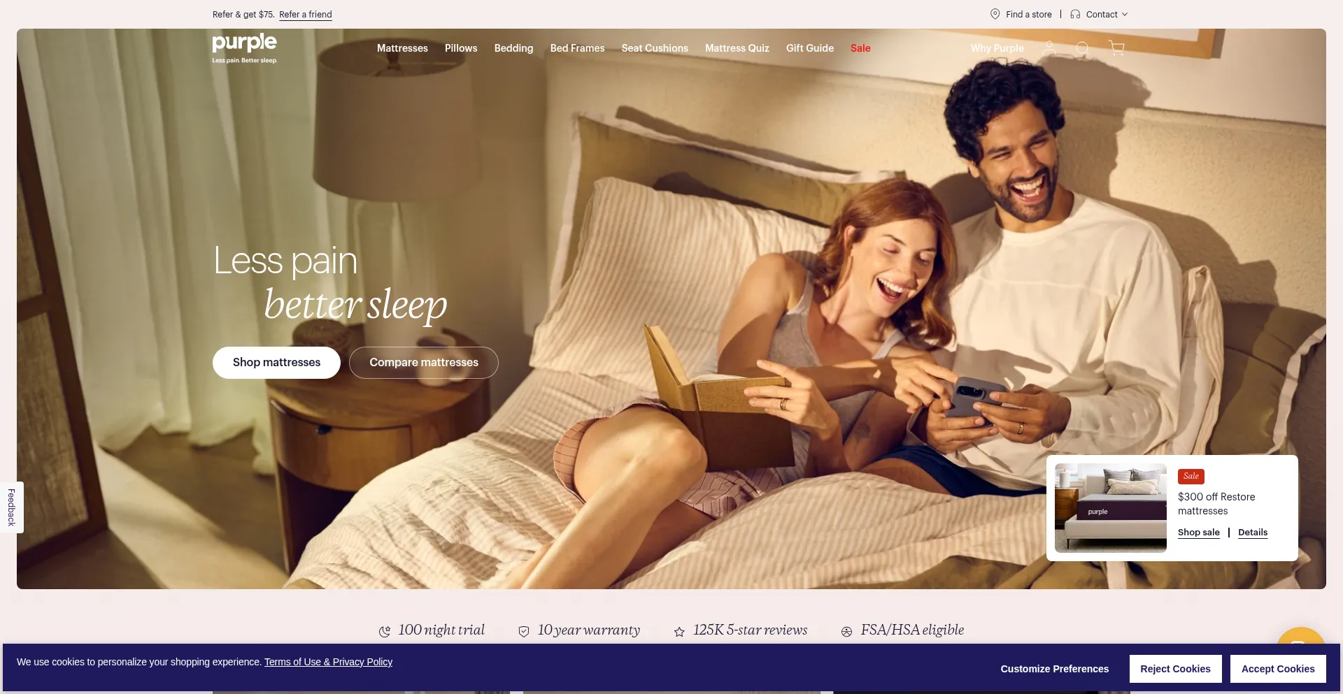 Ease pain and sleep better with a Purple Mattress engineered for pressure relief and all-night comfort. Free delivery, easy returns, 100-night trial.