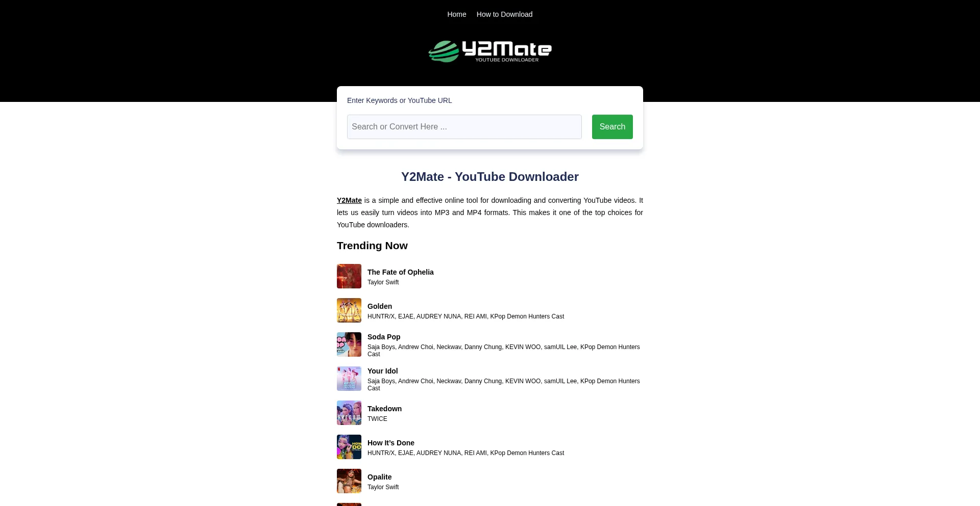 Y2Mate - YouTube to MP3 & MP4 Converter | Fast & Free YouTube Downloader