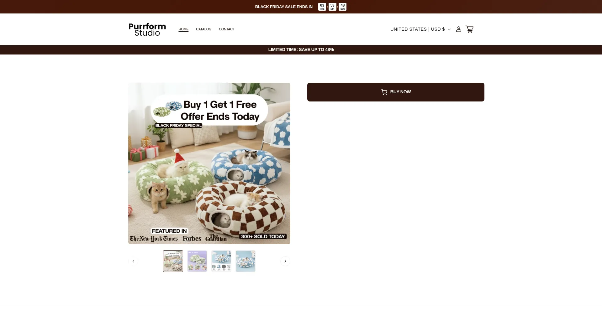 Analysis indicates that purrformstudio.com operates as an e-commerce platform facilitating online transactions for goods or services. The website implements shopping cart functionality, payment processing systems, and product catalog features typical of commercial retail operations.
