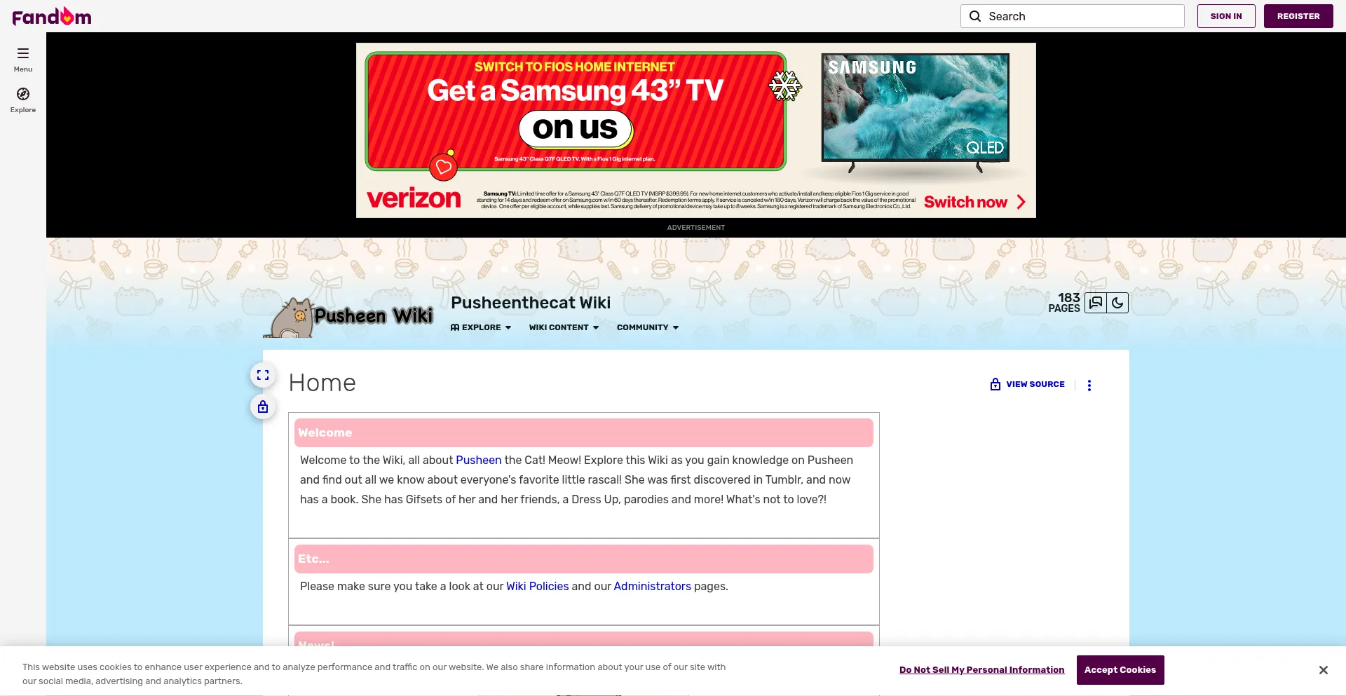 The website implements cookie consent mechanisms in compliance with privacy regulations such as GDPR or CCPA. This demonstrates that pusheenthecat.fandom.com adheres to data protection standards and provides users with control over personal data collection practices.