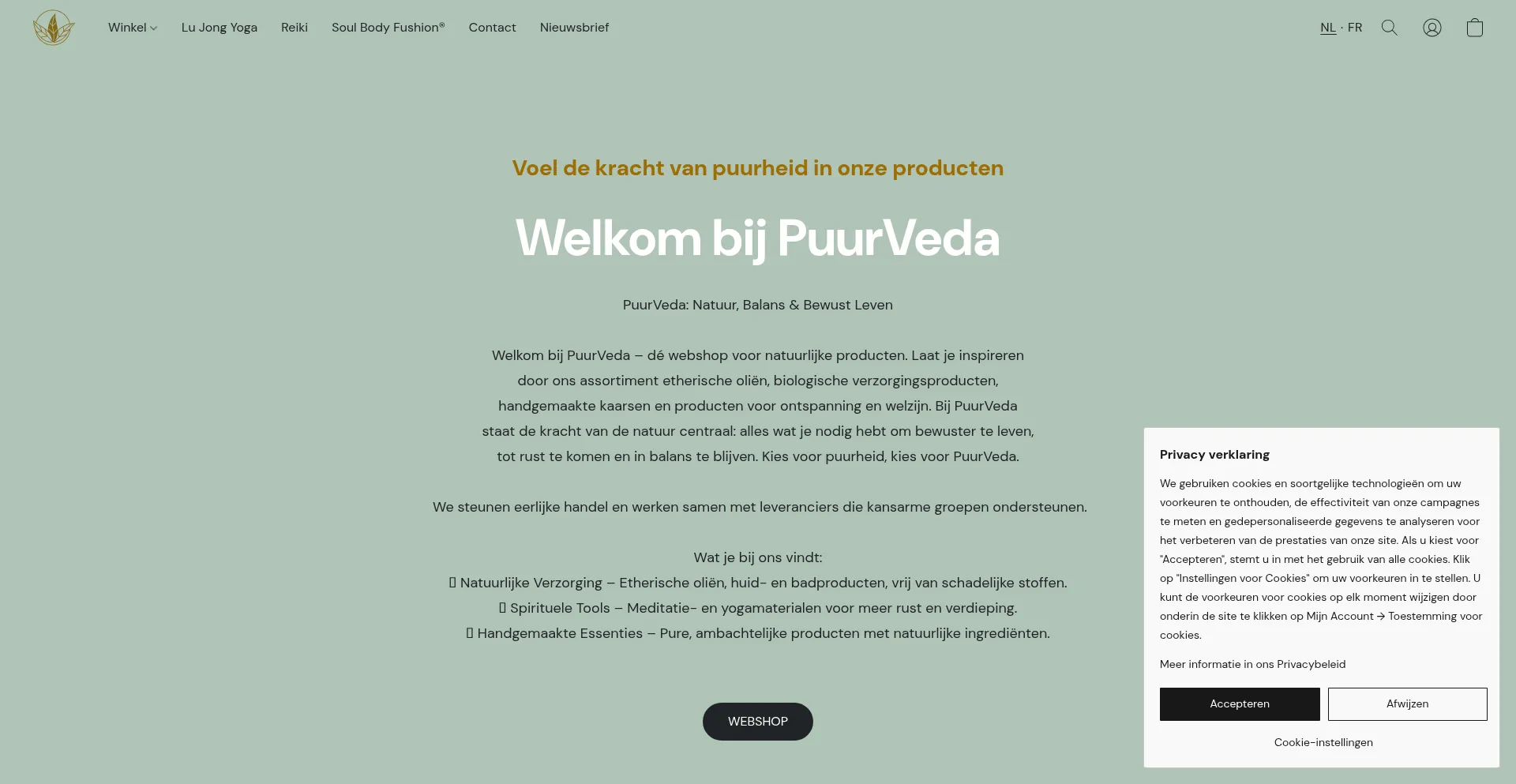 Analysis indicates that puurveda.com operates as an e-commerce platform facilitating online transactions for goods or services. The website implements shopping cart functionality, payment processing systems, and product catalog features typical of commercial retail operations.