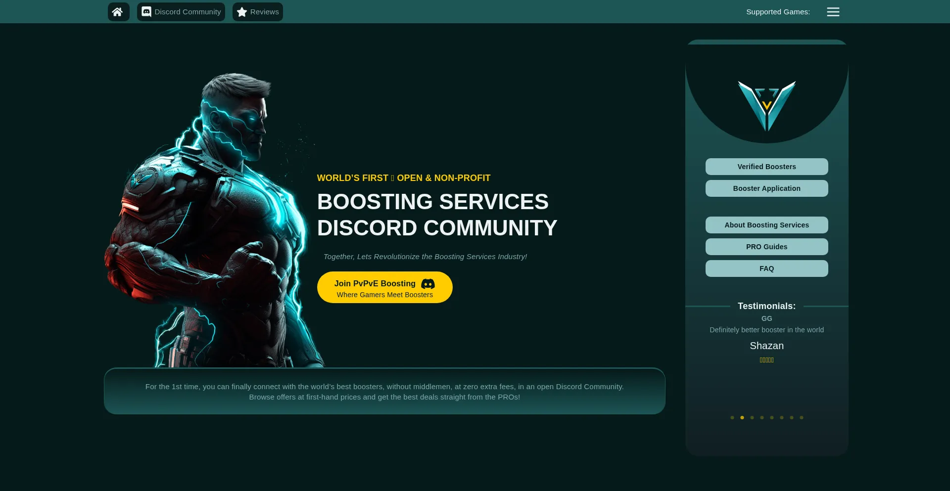 The 1st Open, Non-Profit Boosting Services Platform. PvPvE Boosting Discord Community allows you to connect directly with the World Best Boosters. Join Us Today