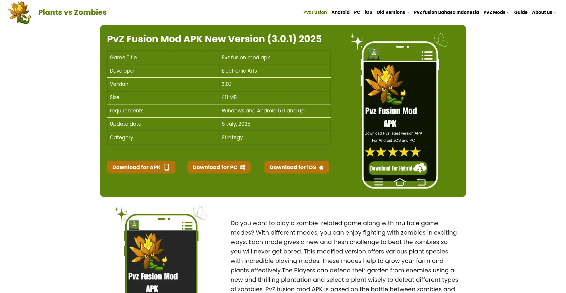 The pvzfusions.io website offers a mobile application for Android devices, indicating expanded platform presence beyond web-based services.
