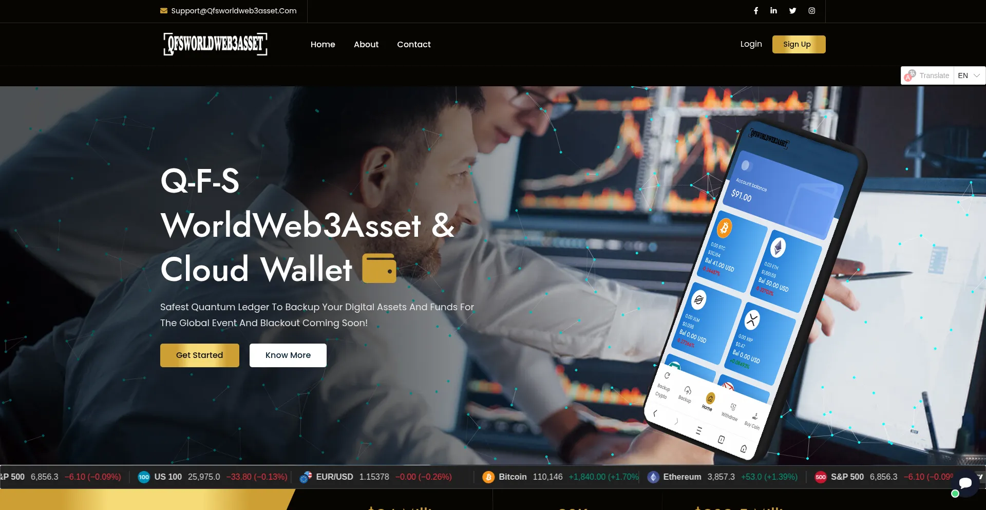Analysis reveals that qfsworldweb3asset.com displays social media icons or links that do not connect to legitimate social media profiles. This deceptive practice is commonly employed to create false legitimacy and represents a significant indicator of fraudulent intent requiring immediate caution.