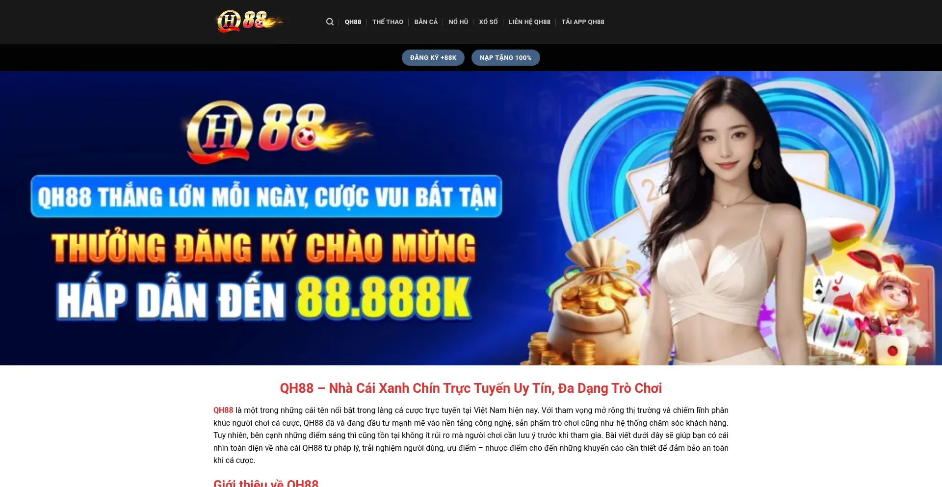 QH88 là nhà cái cá cược trực tuyến nổi bật tại Việt Nam với sản phẩm phong phú như casino, thể thao, xổ số, bắn cá, cùng khuyến mãi lớn...