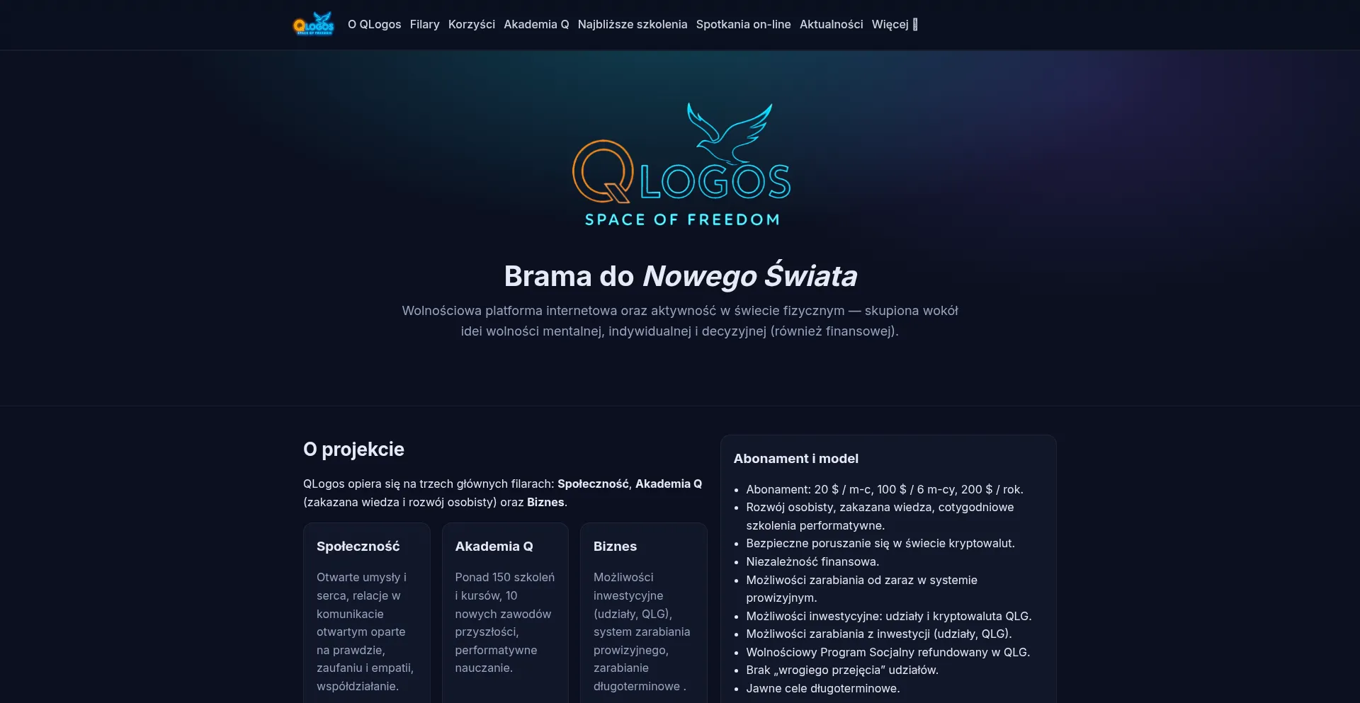 Projekt QLogos — Społeczność, Akademia Q i Biznes. Droga do wolności mentalnej, indywidualnej i finansowej.