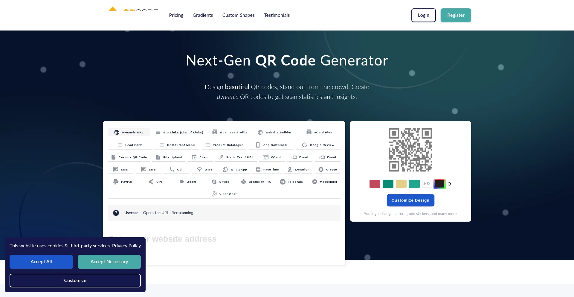 The website implements cookie consent mechanisms in compliance with privacy regulations such as GDPR or CCPA. This demonstrates that qrcode.org adheres to data protection standards and provides users with control over personal data collection practices.