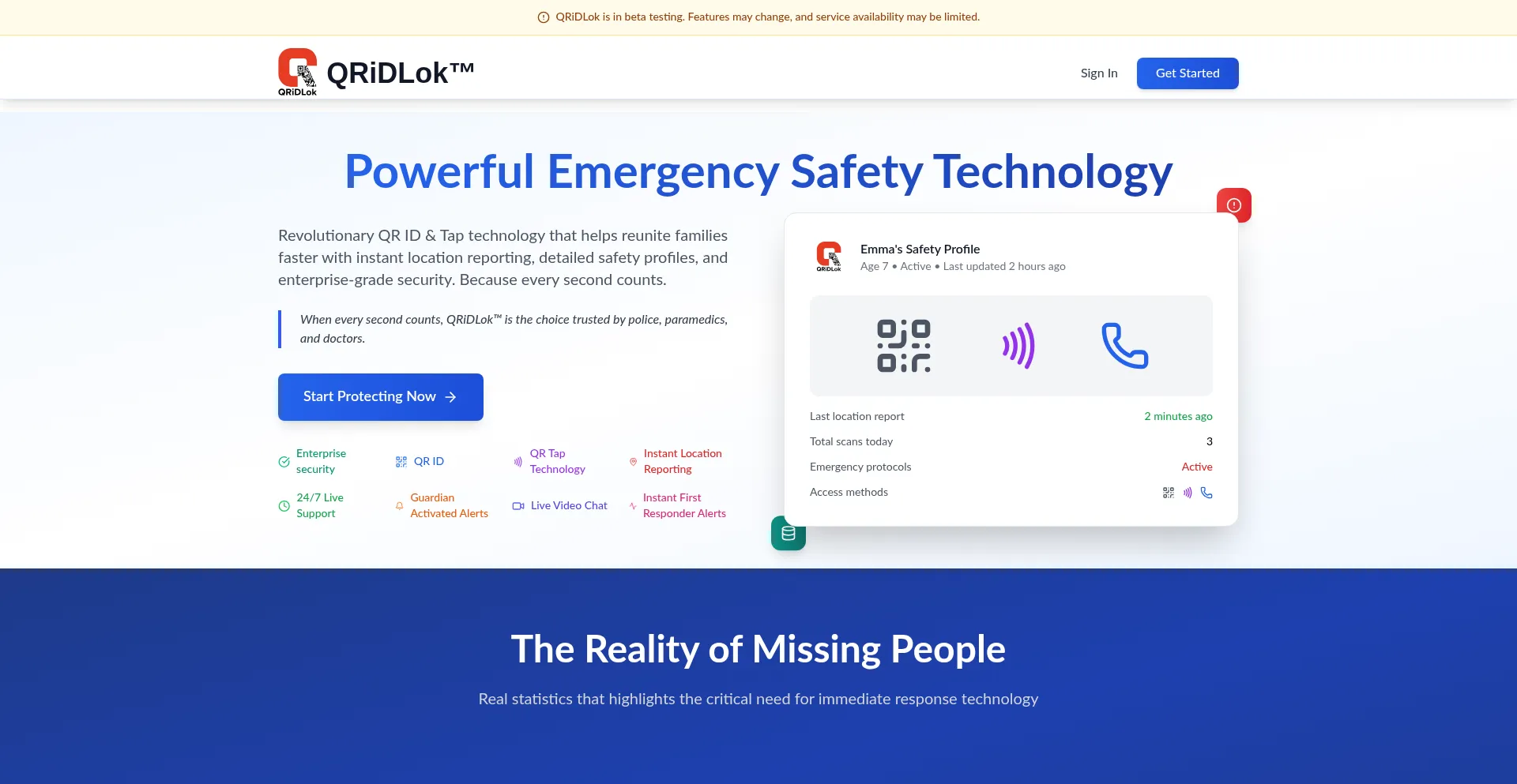 Revolutionary QR ID & Tap technology that helps reunite families faster with instant location reporting, detailed safety profiles, and enterprise-grade security.