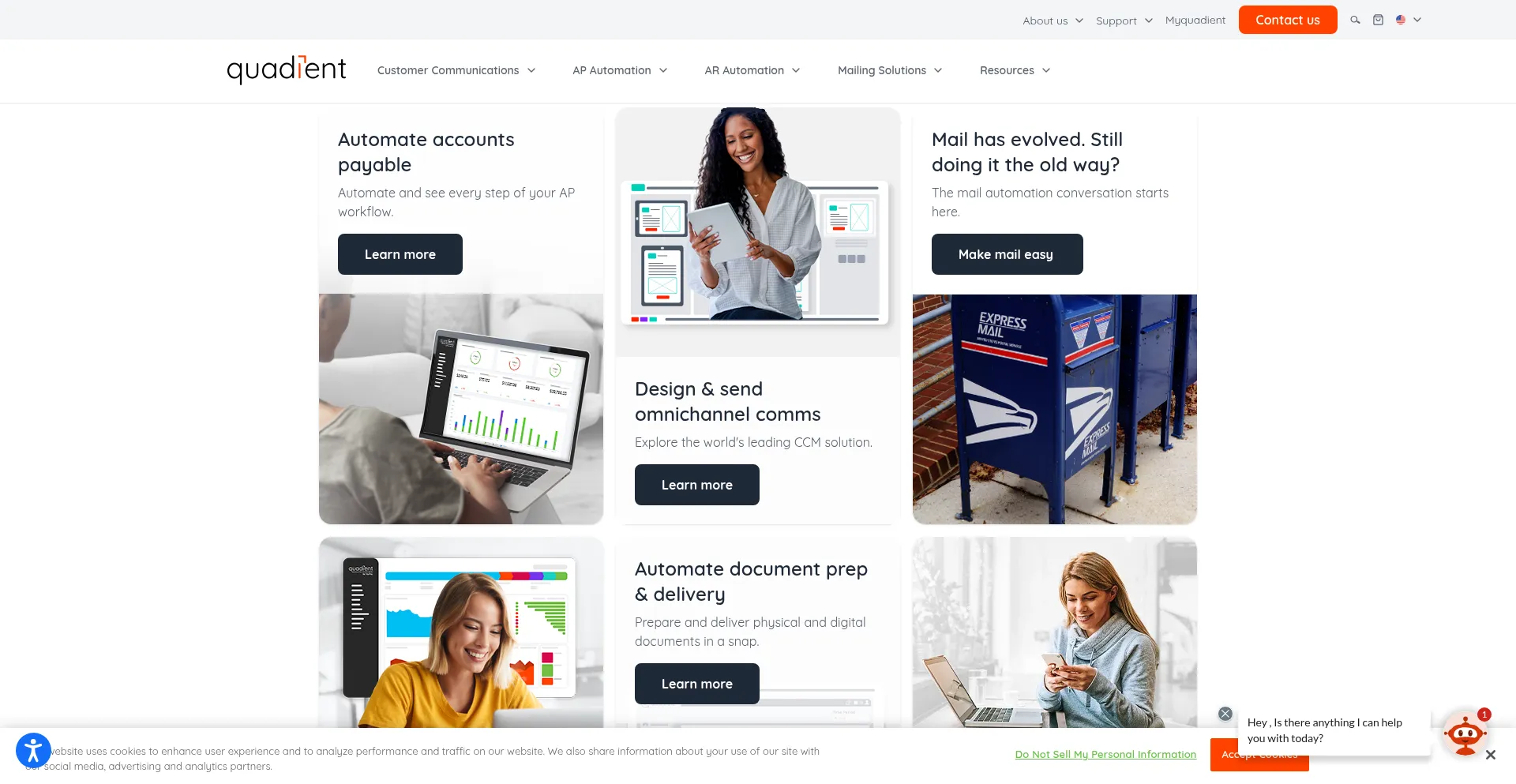 The website implements cookie consent mechanisms in compliance with privacy regulations such as GDPR or CCPA. This demonstrates that quadient.com adheres to data protection standards and provides users with control over personal data collection practices.