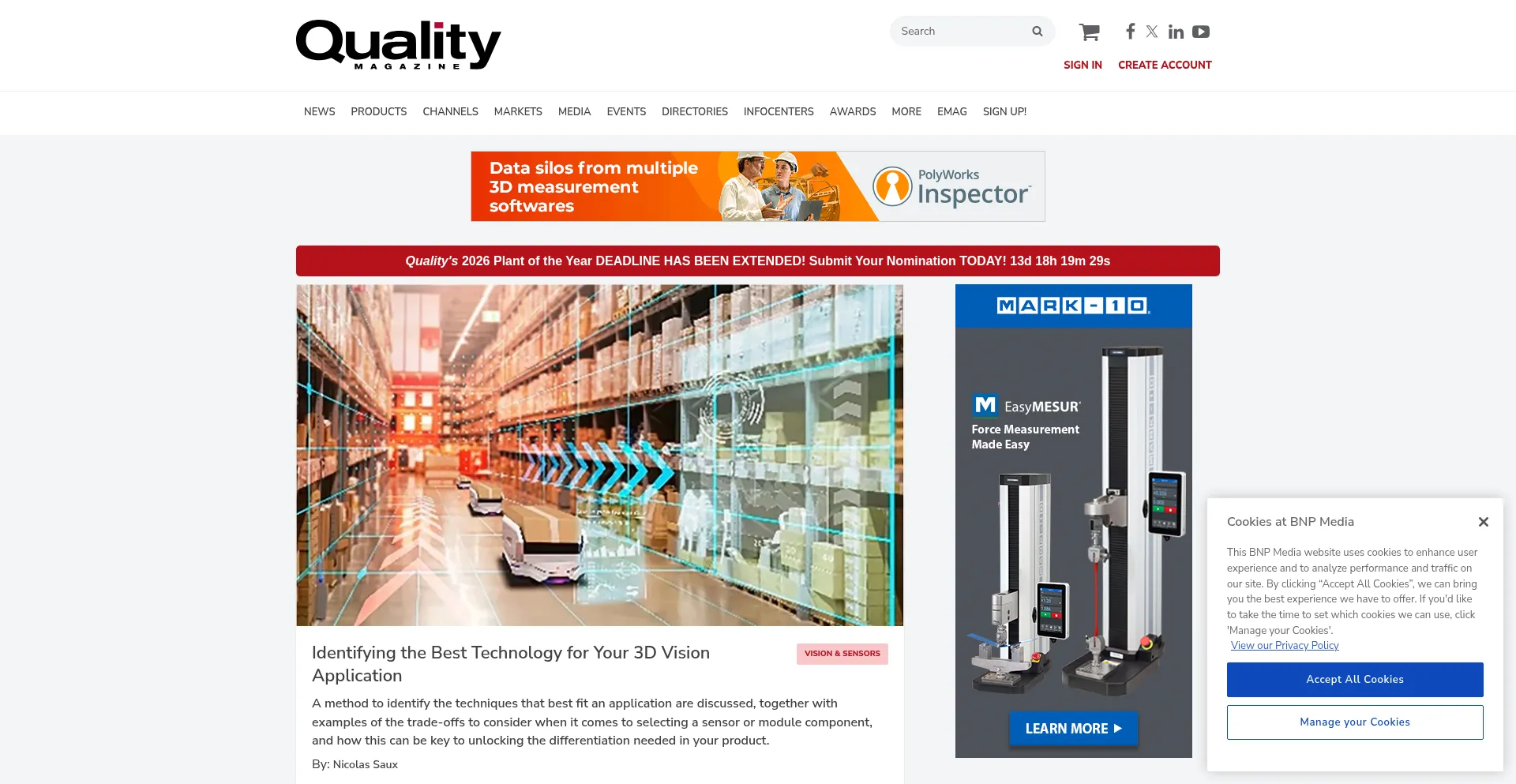 The website implements cookie consent mechanisms in compliance with privacy regulations such as GDPR or CCPA. This demonstrates that qualitymag.com adheres to data protection standards and provides users with control over personal data collection practices.