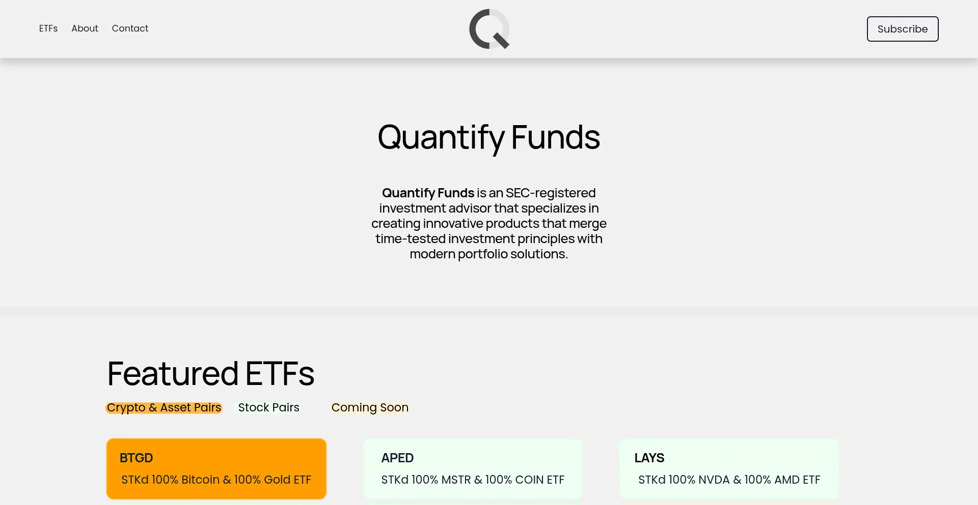The quantifyfundsetfs.com website provides financial services including investment management, wealth advisory, or financial planning solutions. Services may encompass portfolio management, investment opportunities, financial consulting, or asset growth strategies for individual and institutional clients.