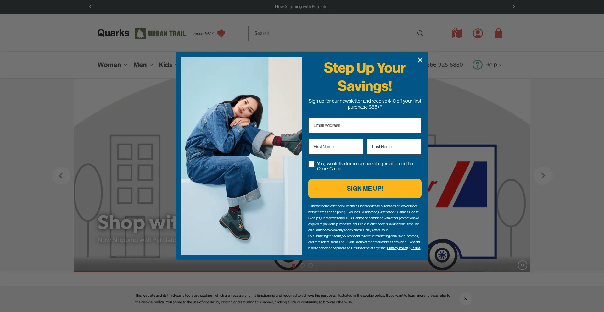 The website implements cookie consent mechanisms in compliance with privacy regulations such as GDPR or CCPA. This demonstrates that quarkshoes.com adheres to data protection standards and provides users with control over personal data collection practices.