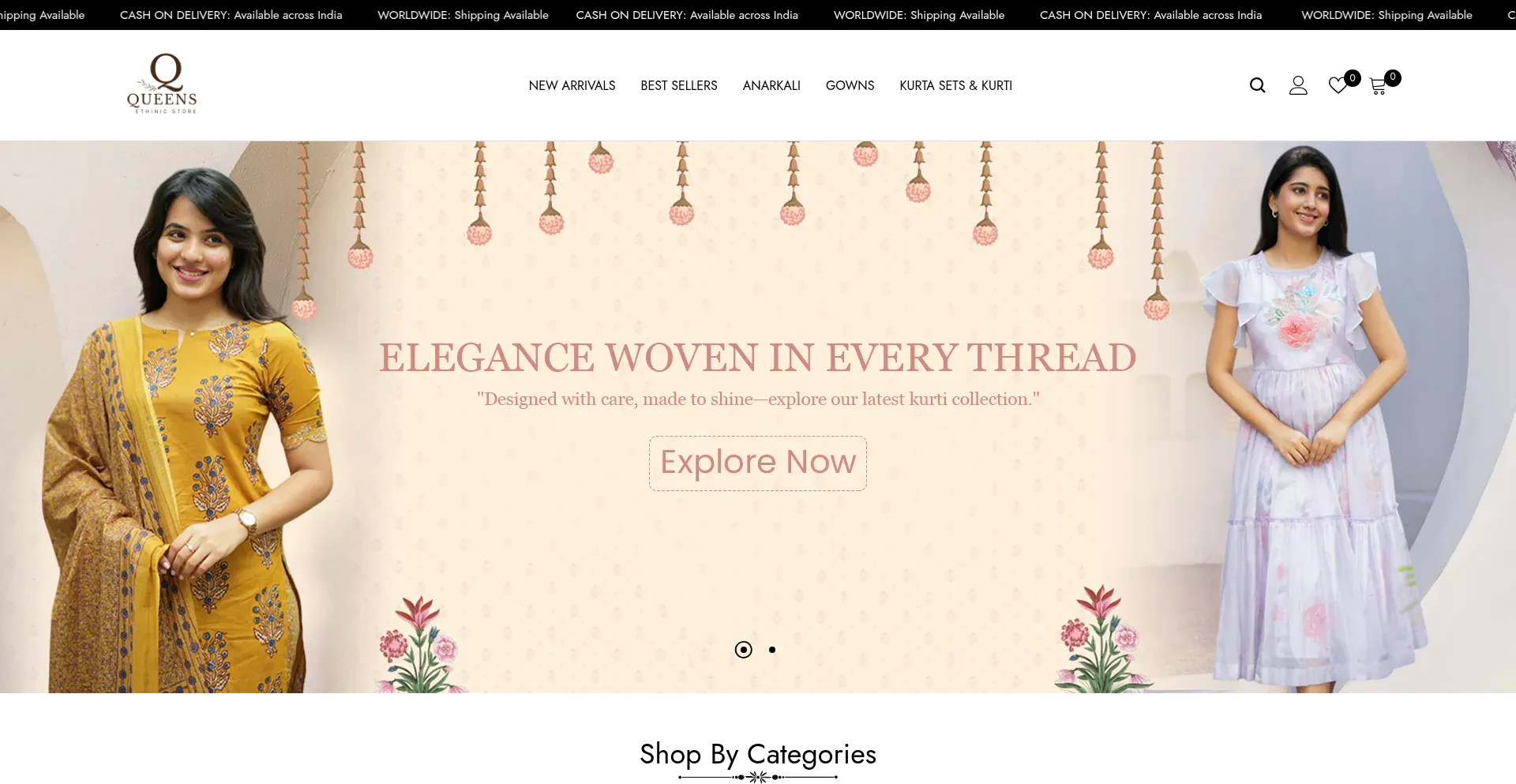 Analysis indicates that queensethnic.com operates as an e-commerce platform facilitating online transactions for goods or services. The website implements shopping cart functionality, payment processing systems, and product catalog features typical of commercial retail operations.