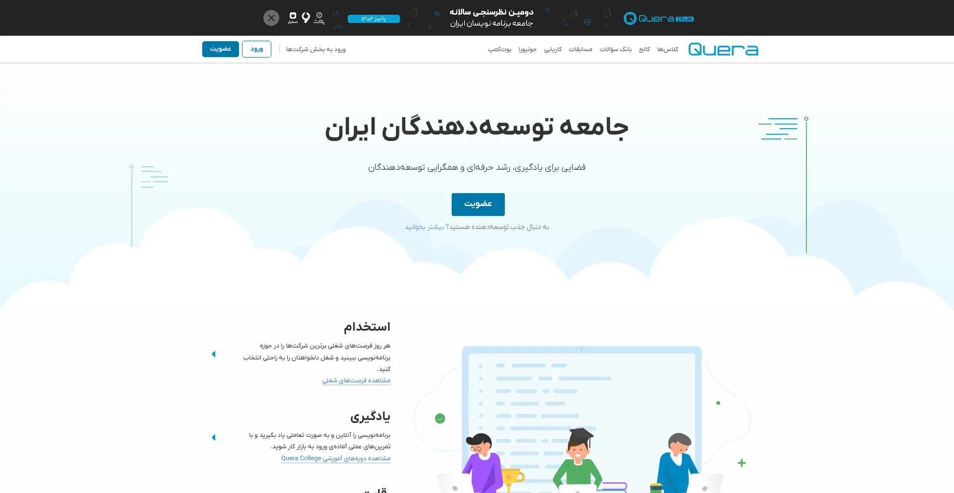 از آموزش و تمرین برنامه‌نویسی تا رقابت و استخدام در بهترین شرکت‌ها! در Quera، بزرگترین جامعه‌ی توس...