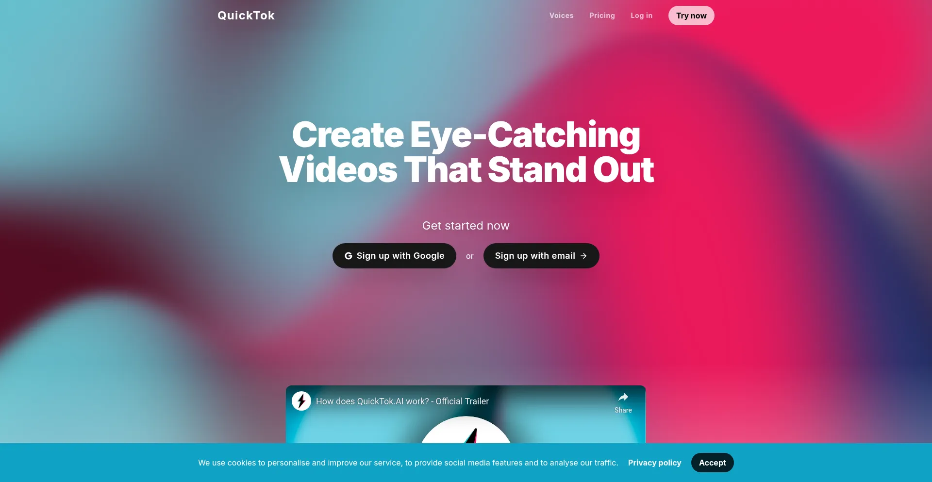 The website implements cookie consent mechanisms in compliance with privacy regulations such as GDPR or CCPA. This demonstrates that quicktok.ai adheres to data protection standards and provides users with control over personal data collection practices.
