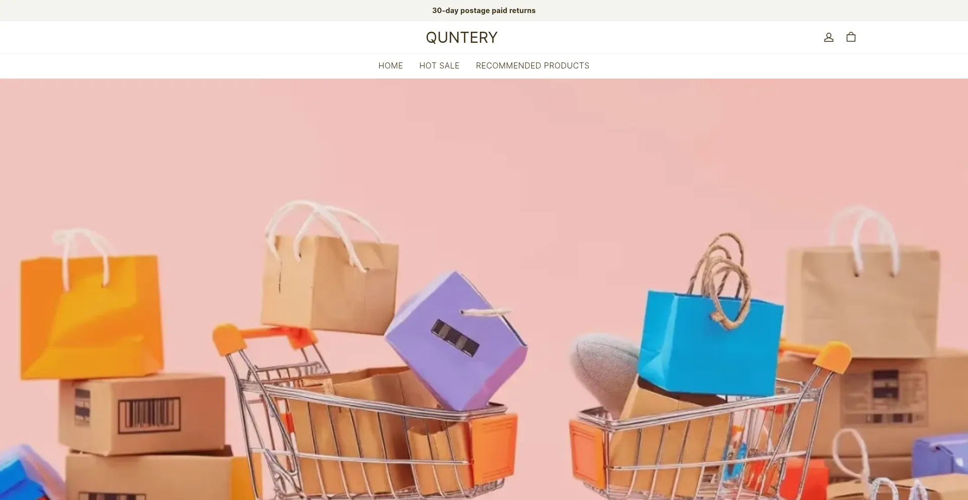 Analysis indicates that quntery.com operates as an e-commerce platform facilitating online transactions for goods or services. The website implements shopping cart functionality, payment processing systems, and product catalog features typical of commercial retail operations.