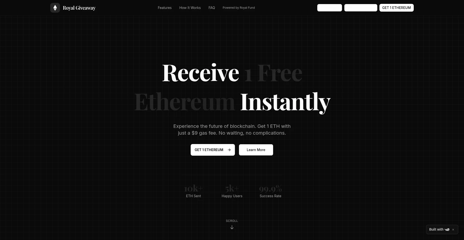 Receive 1 ETH instantly. Powered by Royal Fund.