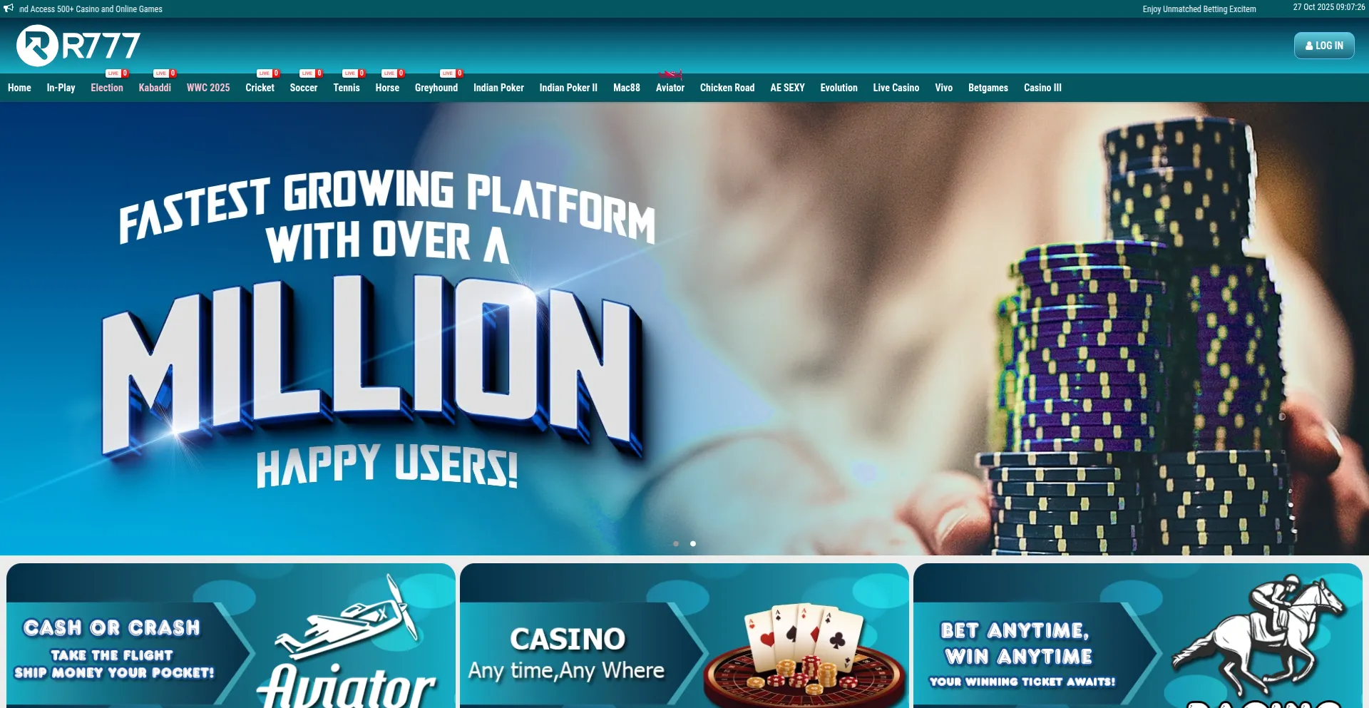 R777 introduces online betting sports, Cricket ID, Fun Gaming, exchange games & online casino games real money for a perfect betting games experience.