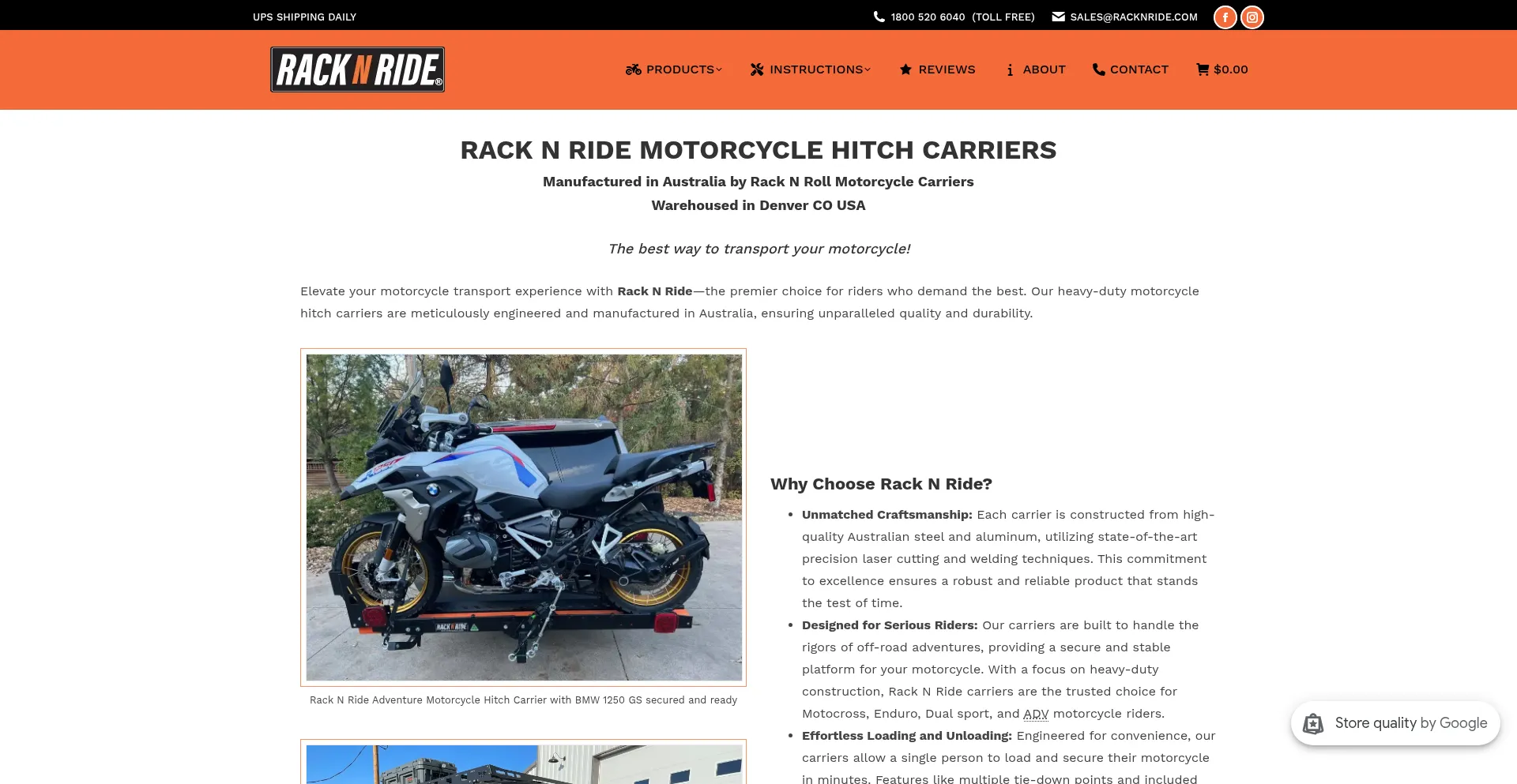Manufacturer of heavy duty, highly engineered motorcycle carriers designed for serious off road use. 5 year Warranty. Best motorcycle hitch hauler to get it there