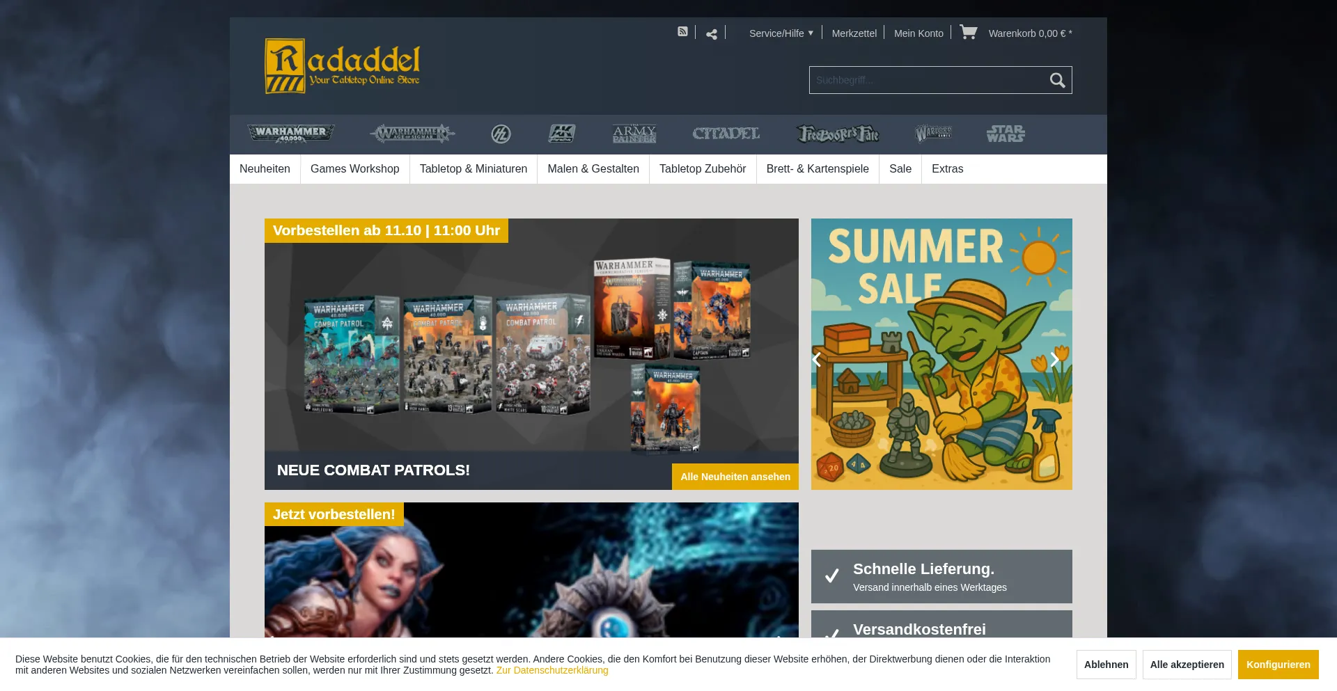 Willkommen bei Radaddel, deinem One-Stop-Shop für Tabletop-Spiele und Miniaturen. Entdecke unser umfangreiches Sortiment an hochwertigen Produkten vo…