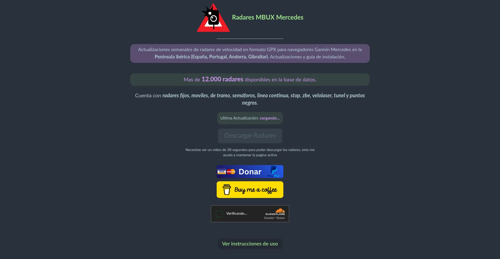 Descargas semanales de radares de velocidad en formato GPX para navegadores Garmin Mercedes en la península ibérica. Actualizaciones automáticas y guía de instalación.