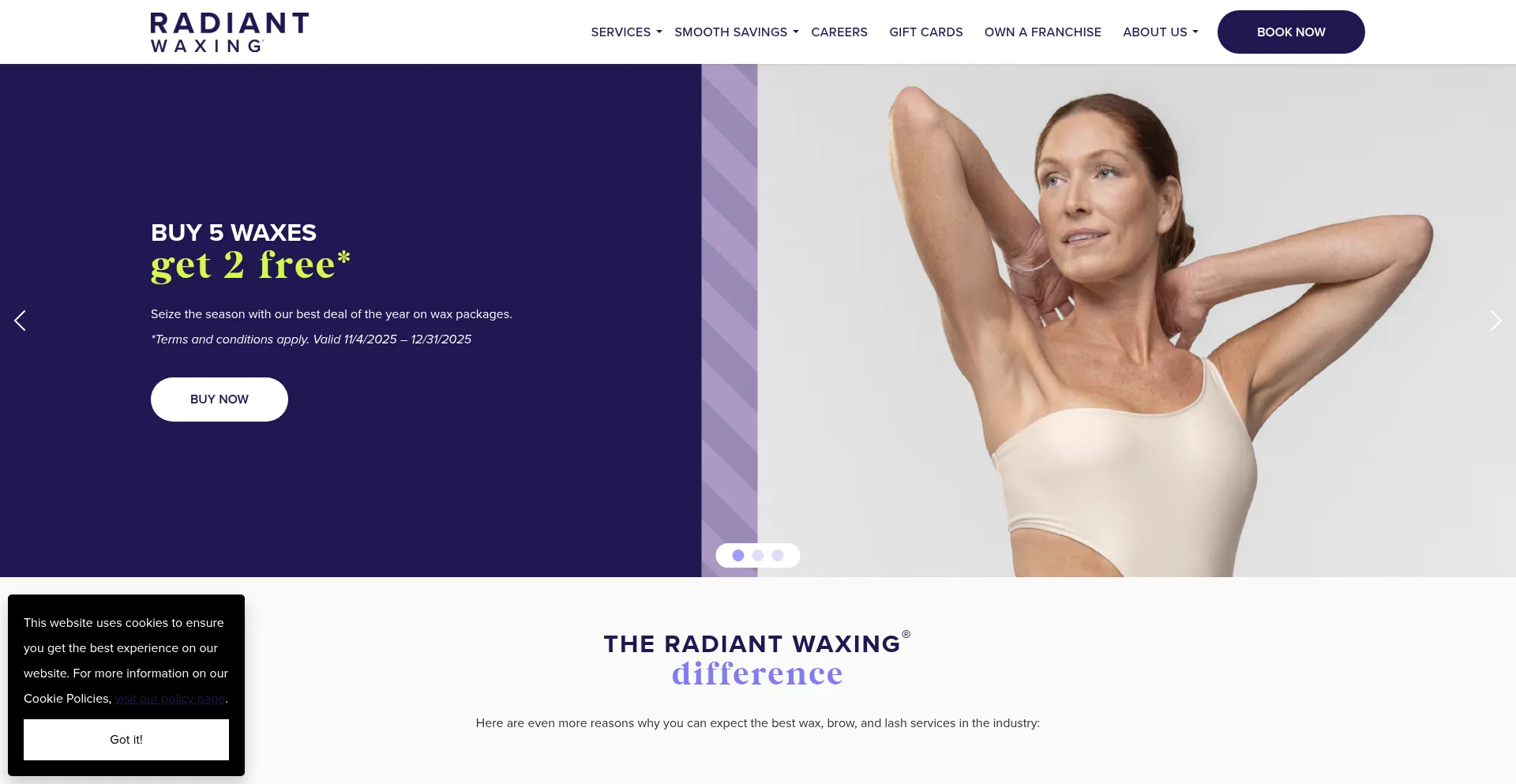 Whether you're looking to wax a little or a lot, Radiant Waxing has the service for you! Visit a salon for an industry-leading hair removal experience!