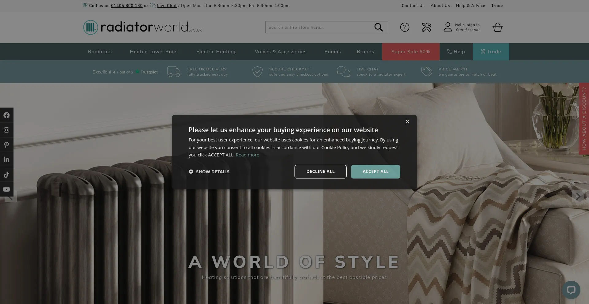 The website implements cookie consent mechanisms in compliance with privacy regulations such as GDPR or CCPA. This demonstrates that radiatorworld.co.uk adheres to data protection standards and provides users with control over personal data collection practices.