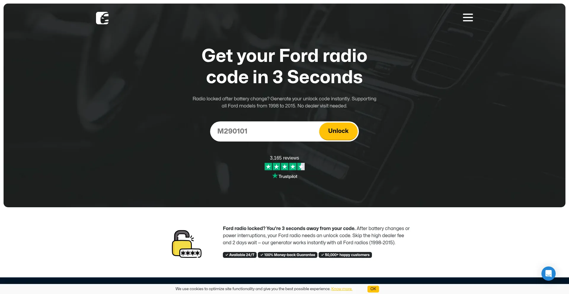 radiocodeford.com has a good Trustpilot score (4.3) based on 3165 reviews, indicating a high level of trust from customers. It is a good sign of legitimacy!