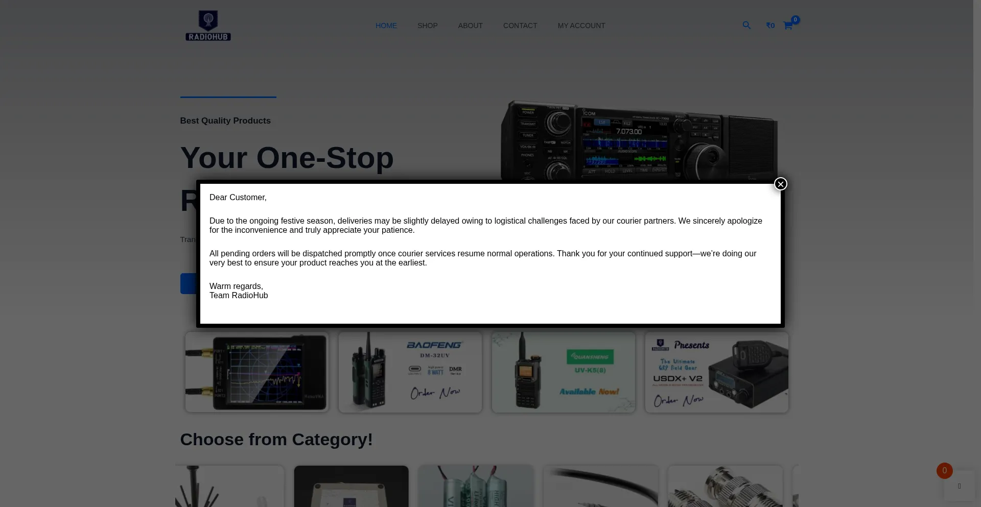 Best Quality Products Your One-Stop Radio Store Transceiver to antenna, connectors to cores find your hobby needs in one place. Get Started Choose from Categ...