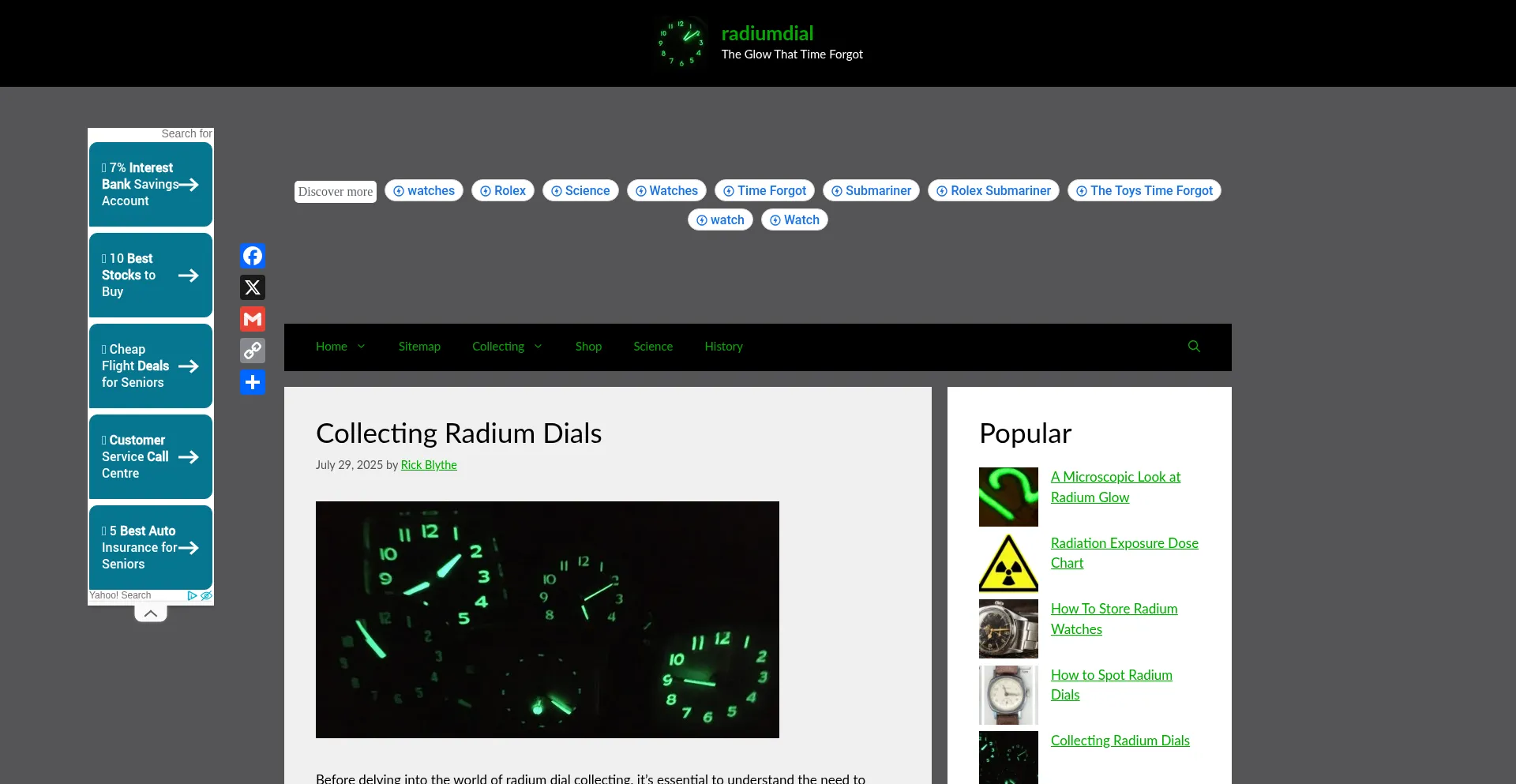 This website explores radium dials. Learn about their unique glow, history, and collectability. Discover the science and beauty of this infamous paint.