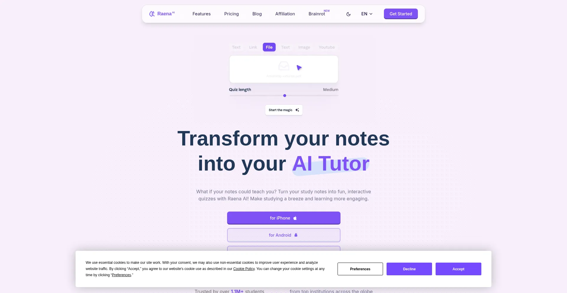 Raena AI is your personal AI study app that transforms study notes into interactive quizzes, summaries, and learning tools. The smartest way to study with AI.