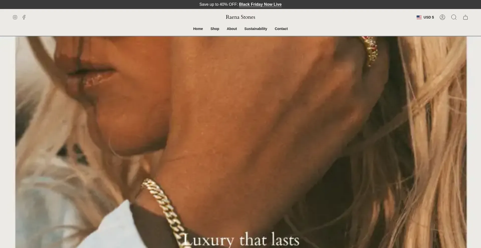 Analysis indicates that raenastones.com operates as an e-commerce platform facilitating online transactions for goods or services. The website implements shopping cart functionality, payment processing systems, and product catalog features typical of commercial retail operations.