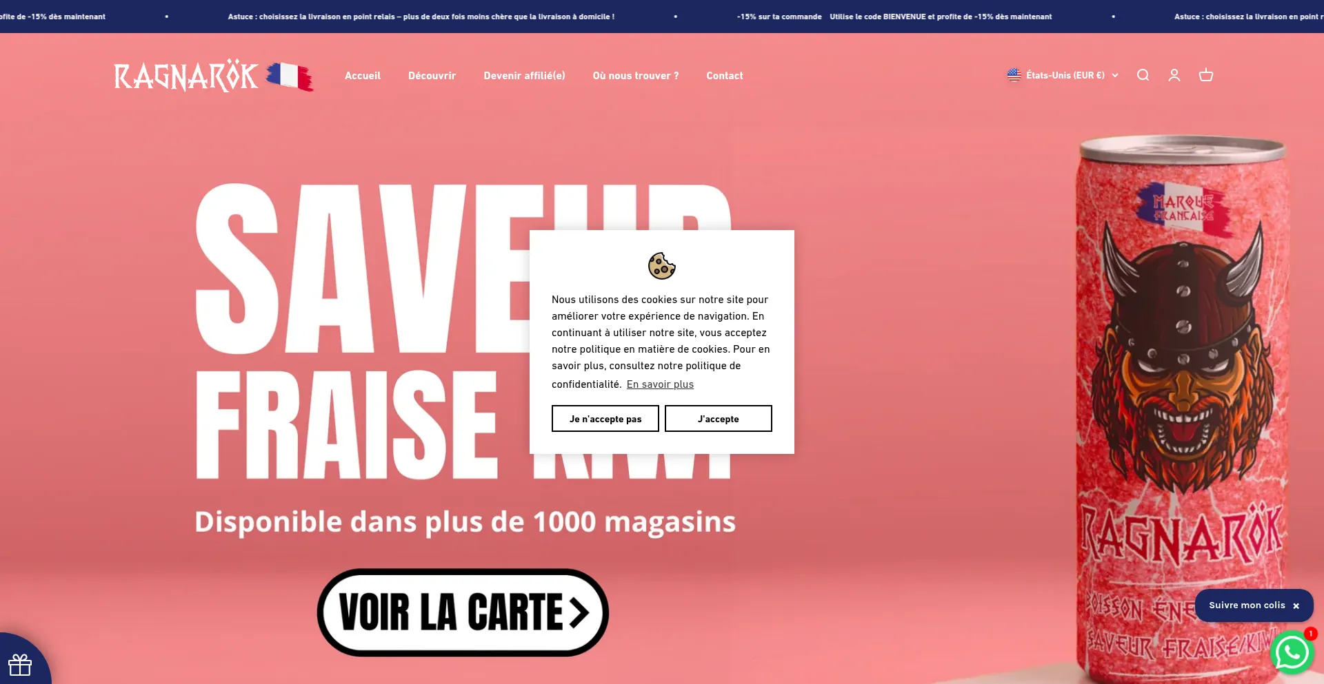 Libérez votre énergie avec Ragnarök Energy Drink, marque française disponible chez Monoprix, Leclerc, Carrefour, Super U, Intermarché, Auchan et plus de 1000 points de vent...